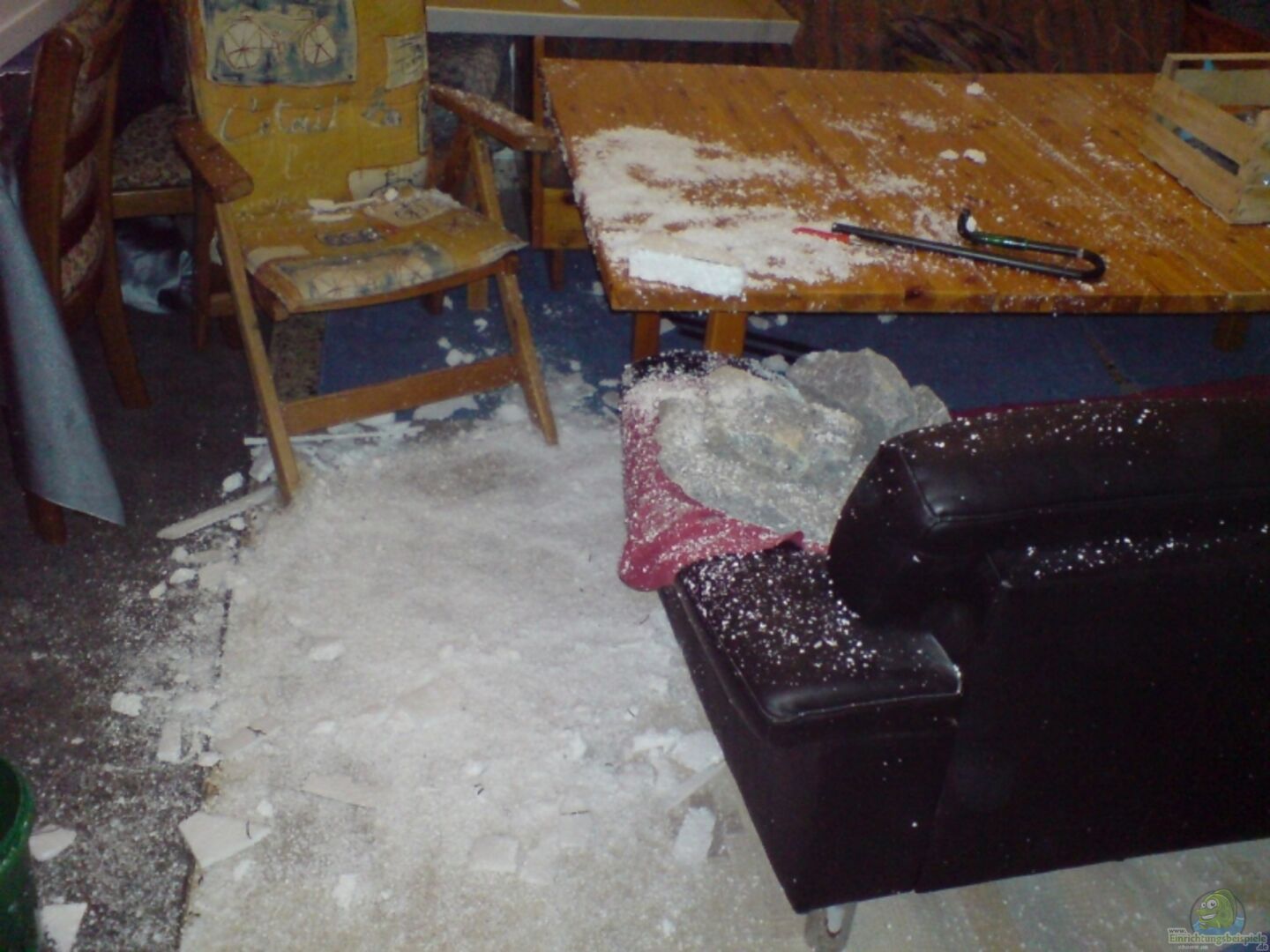 -Sonderanfertigung 120*50*60 Aquarium mit 10 mm Glas mit einer Querstrebe. -Selbstgebauter Unterbau -Rückwand ist von Steinzeitdesign aus ??sterreich