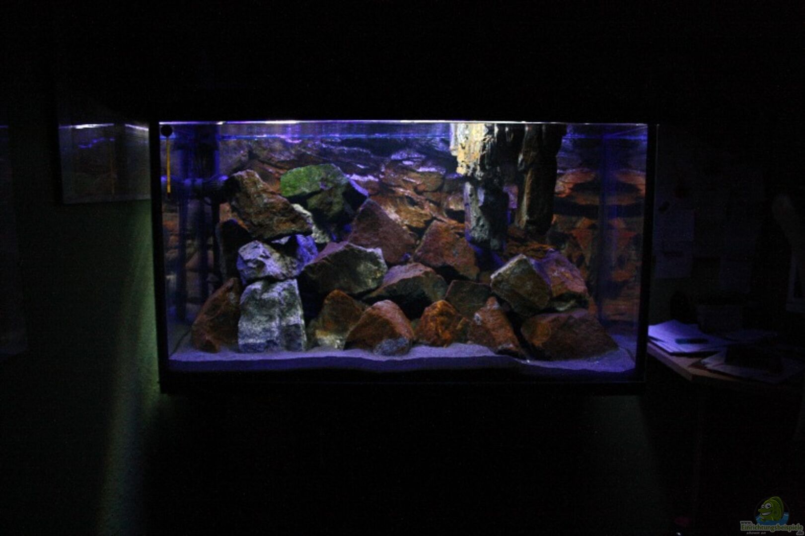 Das Becken ist eine Anfertigung von Tromsa-Aquarien , direkt vom Hesteller. 10mm Glasstärke ( Weissglas) Wulst und Stossverklebt Plexiglas Scheiben ca. 6 mm stärke liegen auf der Bodenscheibe, damit das Gewicht der Steine besser abgefedert wird, und falls mal einer umstürzt kein Glasbruch entsteht. Zwischen Unterschrank und Becken liegt eine Schaumgummimatte zum ausgleichen von Unebenheiten.