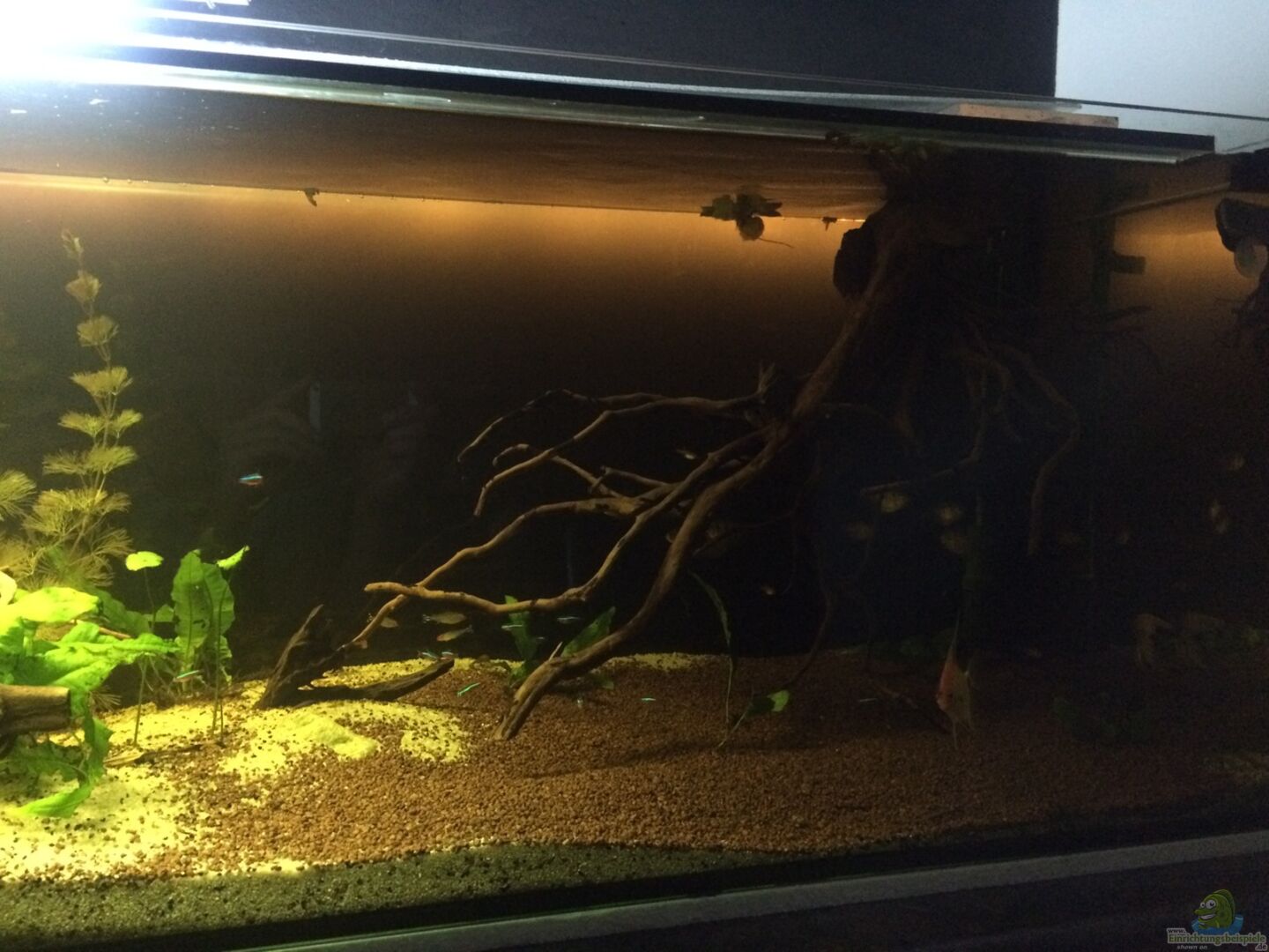 Bio CO2 Anlage mit 8 L Druckbehälter und eine Druckanzeige. Becken nicht komplett beleuchtet.