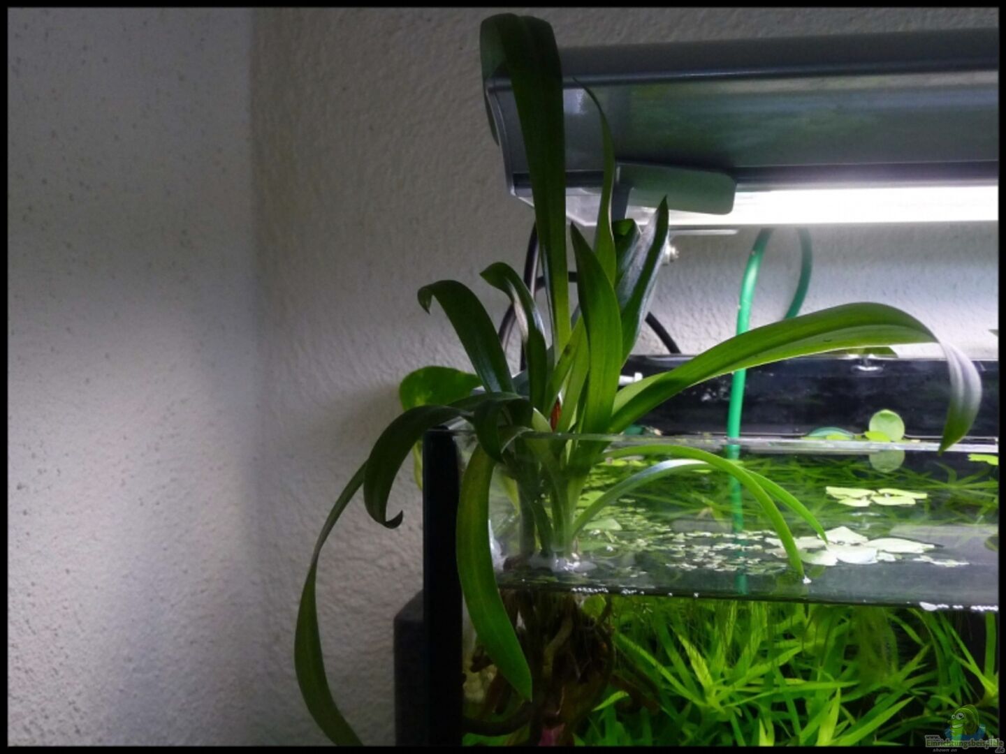 Vorne: Microsorum pteropus `Windeløv` auf Wurzel (Windelov´s kleiner Javafarn) Sagittaria subulata Mitte: Anubias barteri `Coffeefolia (Kaffeeblättriges Speerblatt) Anubias barteri var nana `Gold` Cryptocoryne wendtii Braun (´Braune Wendtii´) Vallisneria nana (Schmalblättrige Vallisnerie/ Zwergvallisnerie) Hinten: Aponogeton crispus (Krause Wasserähre) Heteranthera zosterifolia (Trugkölbchen) Ludwigia repens (Kriechende Ludwigie) Cryptocoryne spiralis Crinum [...]