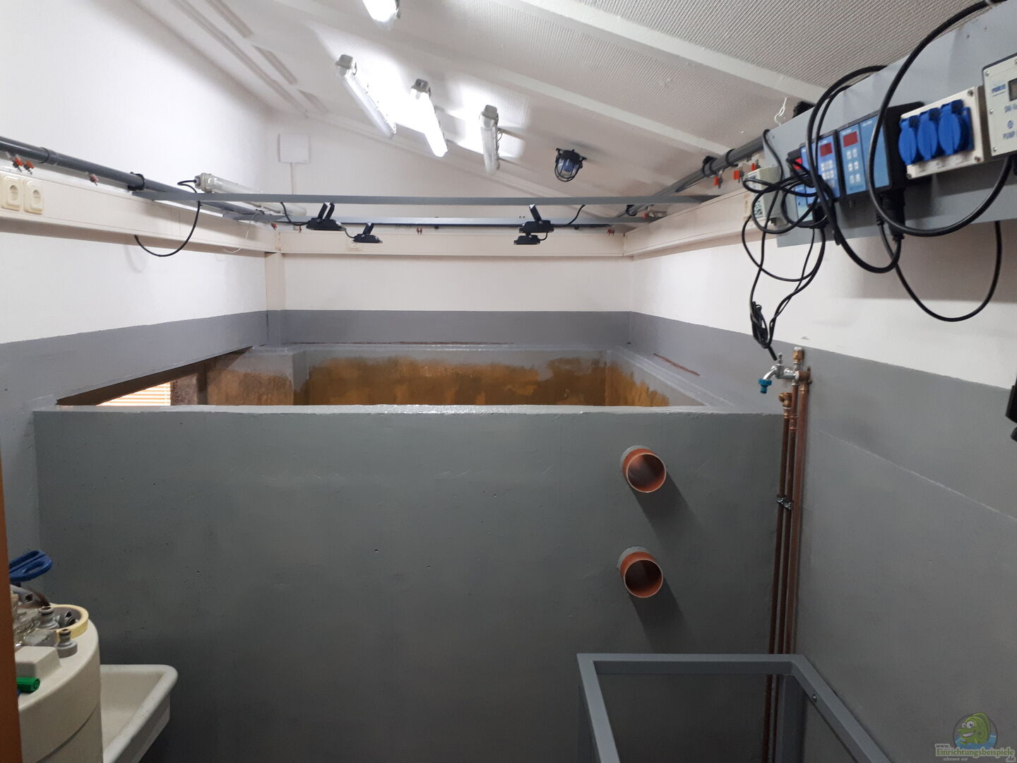 -Strömungspunpen: 3x Tunze 6085 - 8.000l/h - 14 W; gesteuert über Aqua Medic Wave (altes Modell) -Süsswasserabschäumer Aquaforte Tornado II; Wasserzufuhr über etwa den 1/2 Rücklauf der Wassermenge aus einer der o.a. Filterpumpen -Ozonisator CERTIZON Sander 25mg/h, einstellbar -> dadurch glasklares Wasser -Aqua Medic ph-Contoller, wird nur als Anzeigeinstrument genutzt -Heizung: Wärmetauscher (Edelstahlspirale) über Zentralheizung des Hauses, geregelt über einen Heimeier Thermostat-Kopf [...]