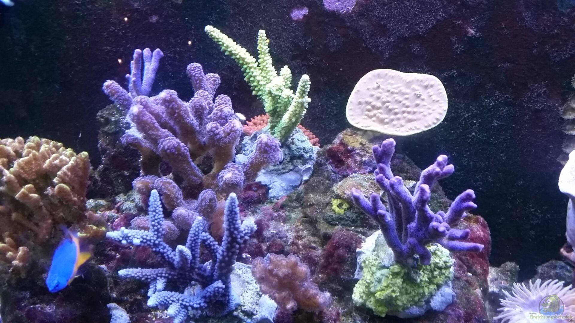 1 Zebrasoma scopas (Brauner Doktorfisch) 1 Cirrhitichthys falco (Zerg-Korallenwächter) 2 Lysamata amboinensis (Putzergarnele) 3 Chrysiptera hemicyanea 1 Pictichromis paccagnellae (Nymphen-Zwergbarsch) 10 Einsiedlerkrebse 3 Turboschnecken Div. Anemonen- und Korallenarten.