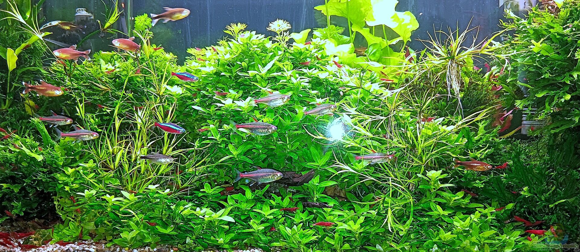 Eheim Komplettset ( Abdeckung mit T-8 Röhren wurde durch LED Beleuchtung ersetzt.) Das Becken wurde komplett neu Eingerichtet.