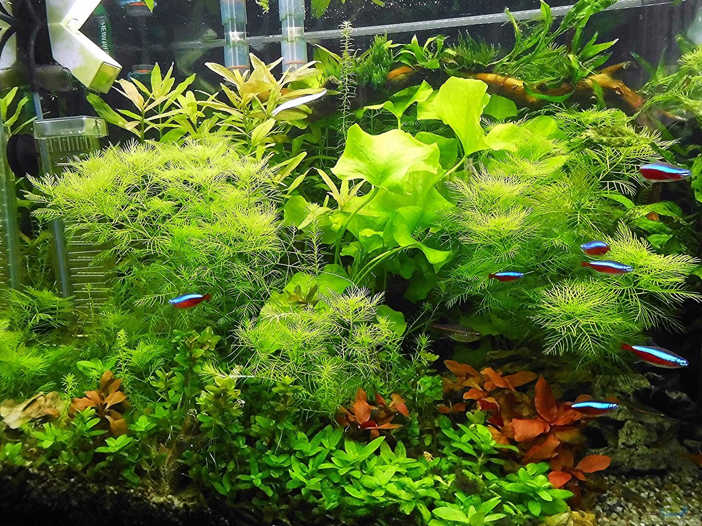 Eheim Komplettset ( Abdeckung mit T-8 Röhren wurde durch LED Beleuchtung ersetzt.) Das Becken wurde komplett neu Eingerichtet.