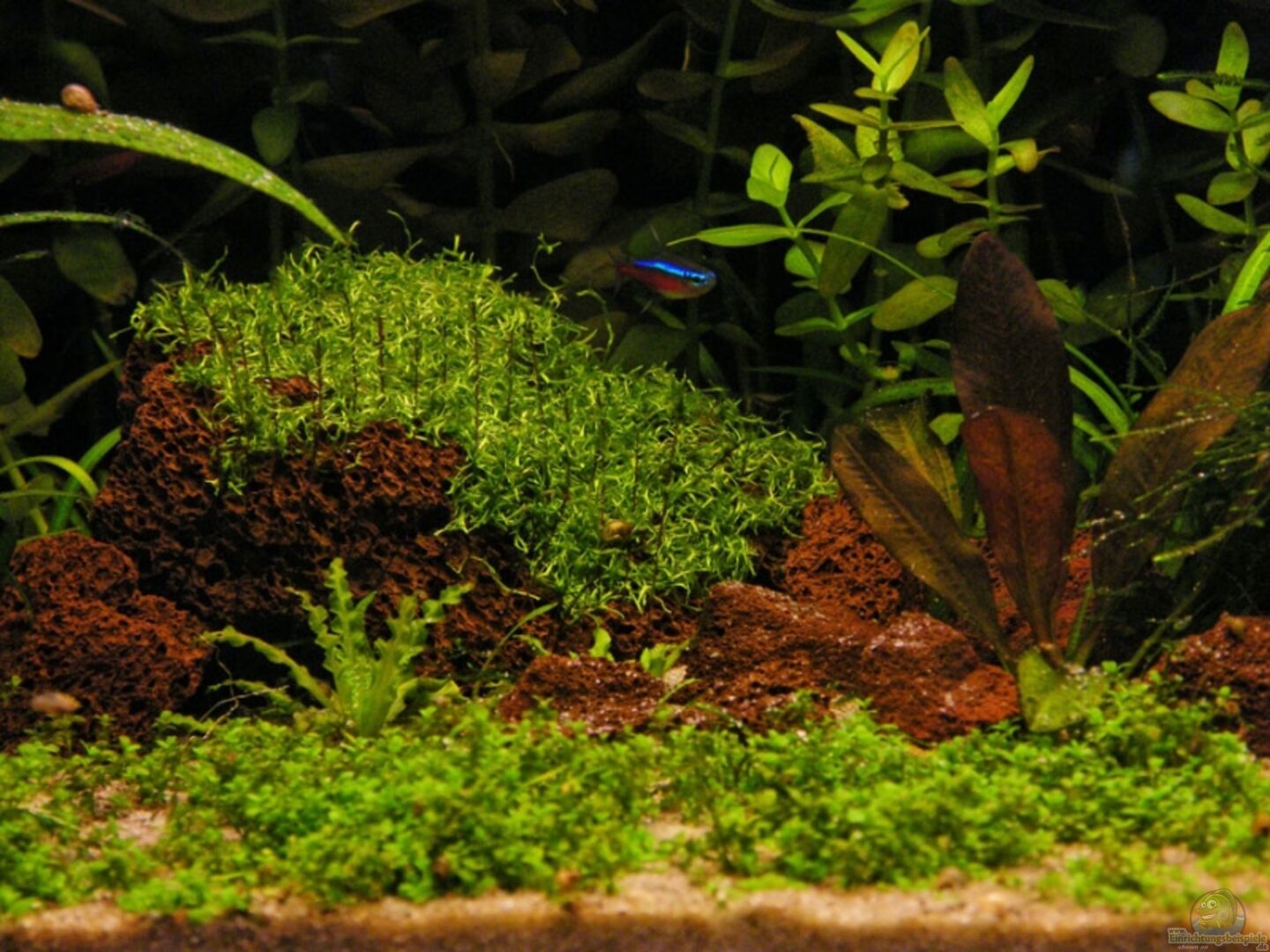 Vorne: Hemianthus callitrichoides cuba (Kubanisches Perlenkraut), Lilaeopsis novaezelandiae (Neuseelandgras), Mitte: Vesicularia dubyana (Javamoos), Echinodorus amazonicus (Amazonas Schwertpflanze), Pogostemon helferi (Kleiner Wasserstern), Sagittaria pusilla (Zwergpfeilkraut) Hinten: Bacopa monnieri (Kleines Fettblatt) Eustralis stellata (Stern Rotalla - Lippenblütler) Wasseroberfläche: Riccia fluitans (Teichlebermoos), So, hoffe das alle Pflanzen richtig [...]