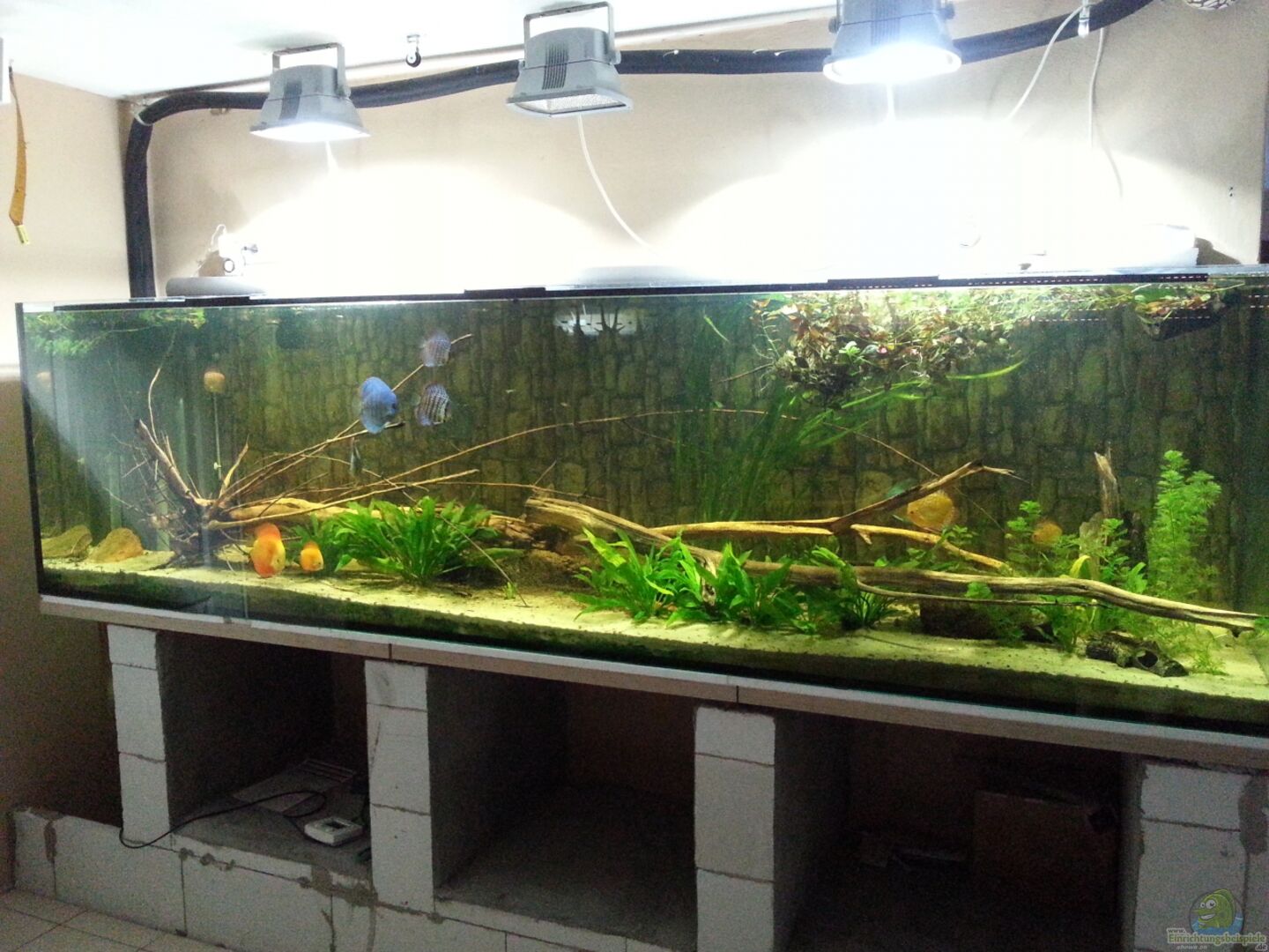Gefertigt aus 15 mm Glas, zweigeteilte Bodenplatte, Sto??verklebt, geklebt geliefert, 3 Zugstreben, Strebe zusätzlich auf die Bodenplattennaht geklebt. Alle Streben aus 12mm Glas. Hinten links ein ??berlaufschacht mit zwei Bohrungen (55 und 45 mm) als Ablauf. Wasserstand des Beckens ca. mittig Stabistreben, kurz unter den Zugstreben. 6 Personen hatten alle Hände voll zu tun, den Tank unbeschadet durchs Fenster zu hieven. 10 Minuten Arbeit und 2 Frühstückspause danach :-) Unterbau [...]
