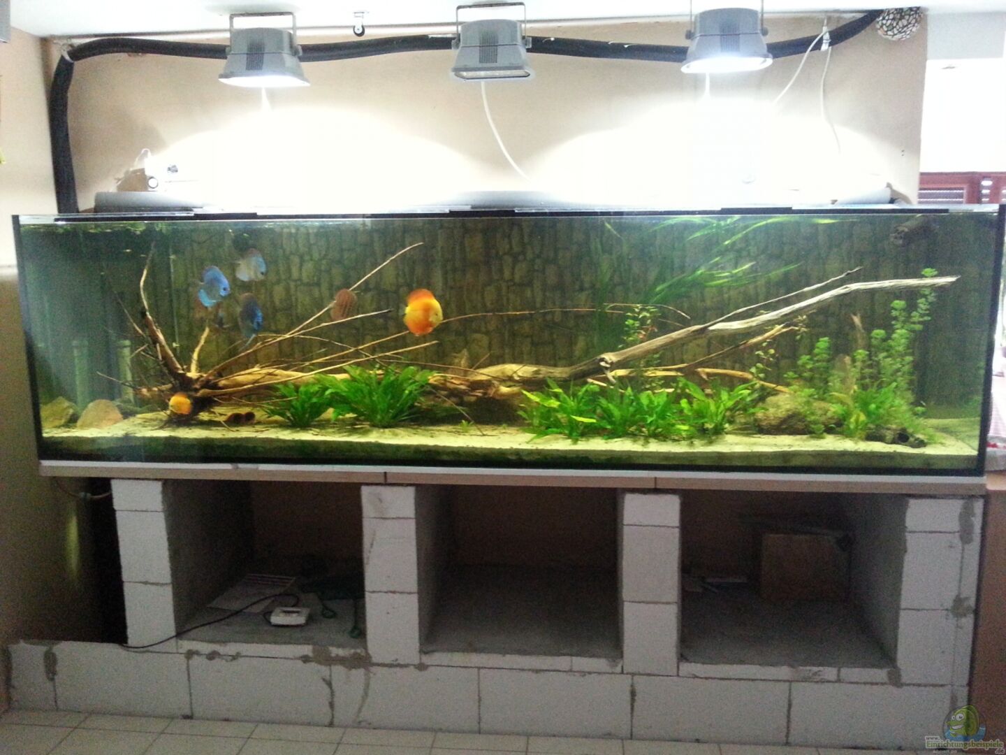 Gefertigt aus 15 mm Glas, zweigeteilte Bodenplatte, Sto??verklebt, geklebt geliefert, 3 Zugstreben, Strebe zusätzlich auf die Bodenplattennaht geklebt. Alle Streben aus 12mm Glas. Hinten links ein ??berlaufschacht mit zwei Bohrungen (55 und 45 mm) als Ablauf. Wasserstand des Beckens ca. mittig Stabistreben, kurz unter den Zugstreben. 6 Personen hatten alle Hände voll zu tun, den Tank unbeschadet durchs Fenster zu hieven. 10 Minuten Arbeit und 2 Frühstückspause danach :-) Unterbau [...]