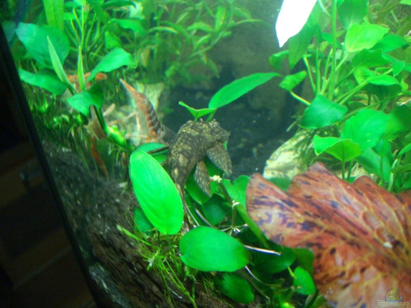am Boden: - 2 Dornaugen - 2 braune Antennenwelse - 1 blauer Florida-Sü??wasserhummer - 1 roter Lousiana Flusskrebs weiter oben: - 1 Kampffisch ´Betta Splendens´ - 20 rote Neons - 8 Schmucksalmler ´white fin´ - 2 Skalare - 1 Platy + 2 Molli`s (Restbestand) --> kommt auch nichts mehr nach. Ich versuche auf ´natürliche Weise´ vom Fischbestand etwas runterzukommen.