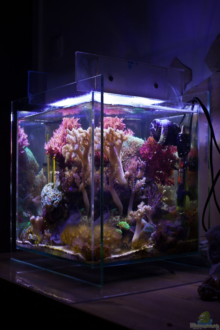 Seiten- und Bodenscheibe sind zwischen die Front- und Rückscheibe "schwebend" eingeklebt, so steht das Ganze nur auf der Front- und Rückscheibe. Dabei wurde so wenig Silikon wie möglich eingesetzt, damit nur die Scheiben in der Ansicht wirken.