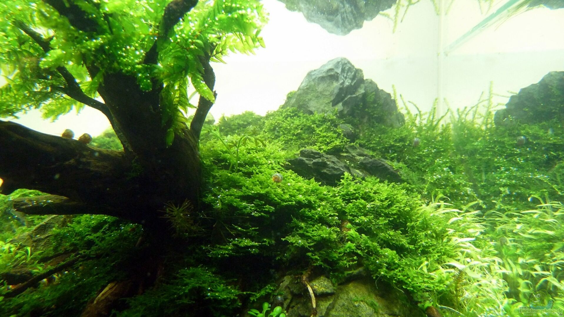 Das Becken ist eine transparent verklebte Ma??anfertigung Die Beleuchtungskonstruktion ist Marke Eingenbau mit im Baumarkt erhältlichen Aluminiumprofilen, Kunststoffgelenken, Stahlwinkeln, einem alten Dennerle-Reflektor, einfachen G23-Fassungen und zwei KVG welche, hinter dem Becken durch eine Kunststoffabdeckung geschützt, auf dem Unterbrett montiert sind. Die Konstruktion wird durch Popnieten gehalten. Zuleitung inkl. Schalter wurden von einer alten Nachttischlampe wiederverwendet. Kostenpunkt [...]