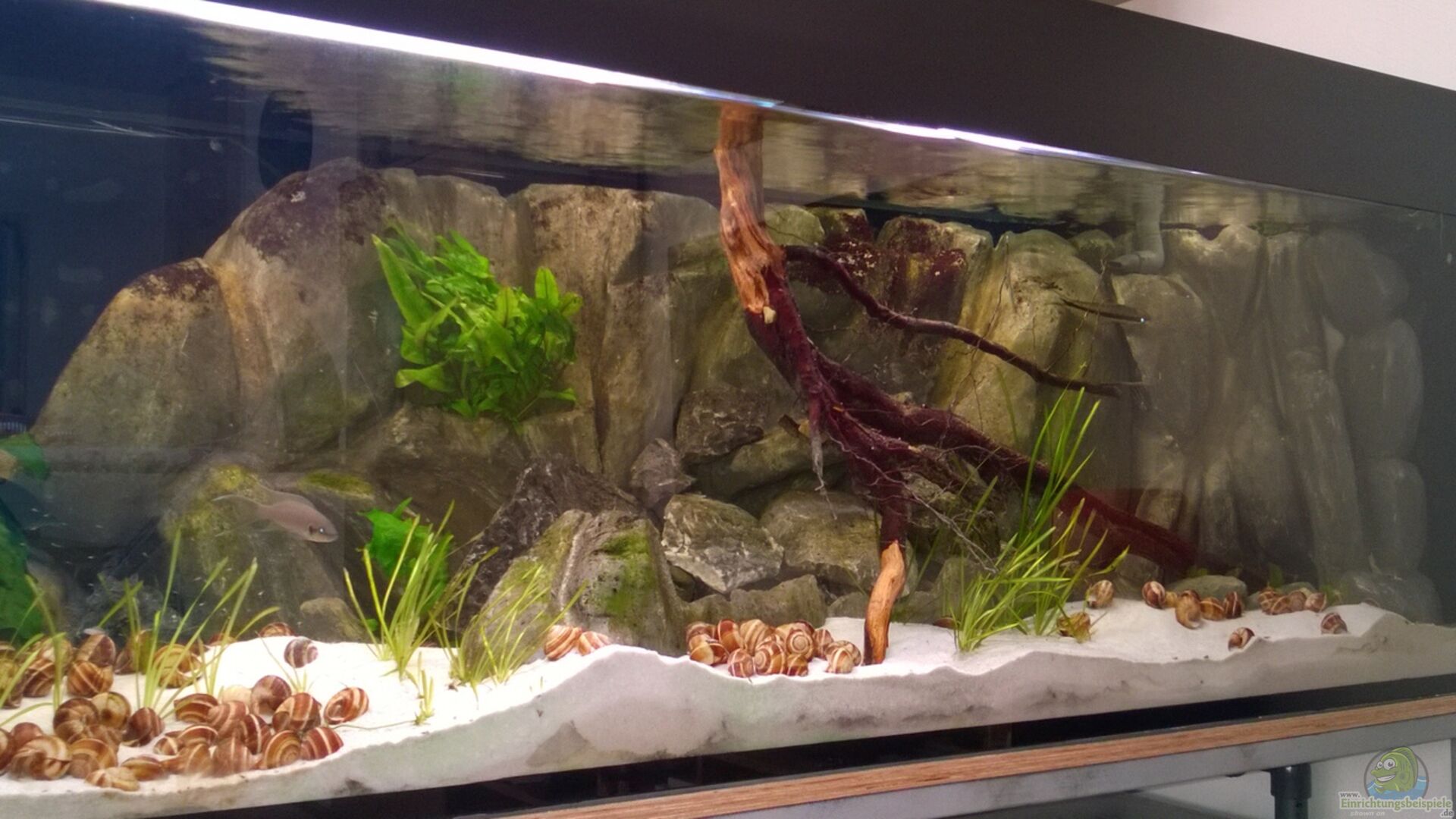 Hinten rechts doppelwandiger ??berlaufschacht mit einstellbarem Kamm für oben und 4 Gitter weiter unten für den Wasseraustausch im Bodenbereich. Bohrungen im Aqua-Boden für Ablauf nach unten und Einlauf zur Wasserrückführung. Aquarium Sto??- und Wulsverklebt. Frontscheibe aus Floatglas. Alle Scheiben sind 12mm dick.