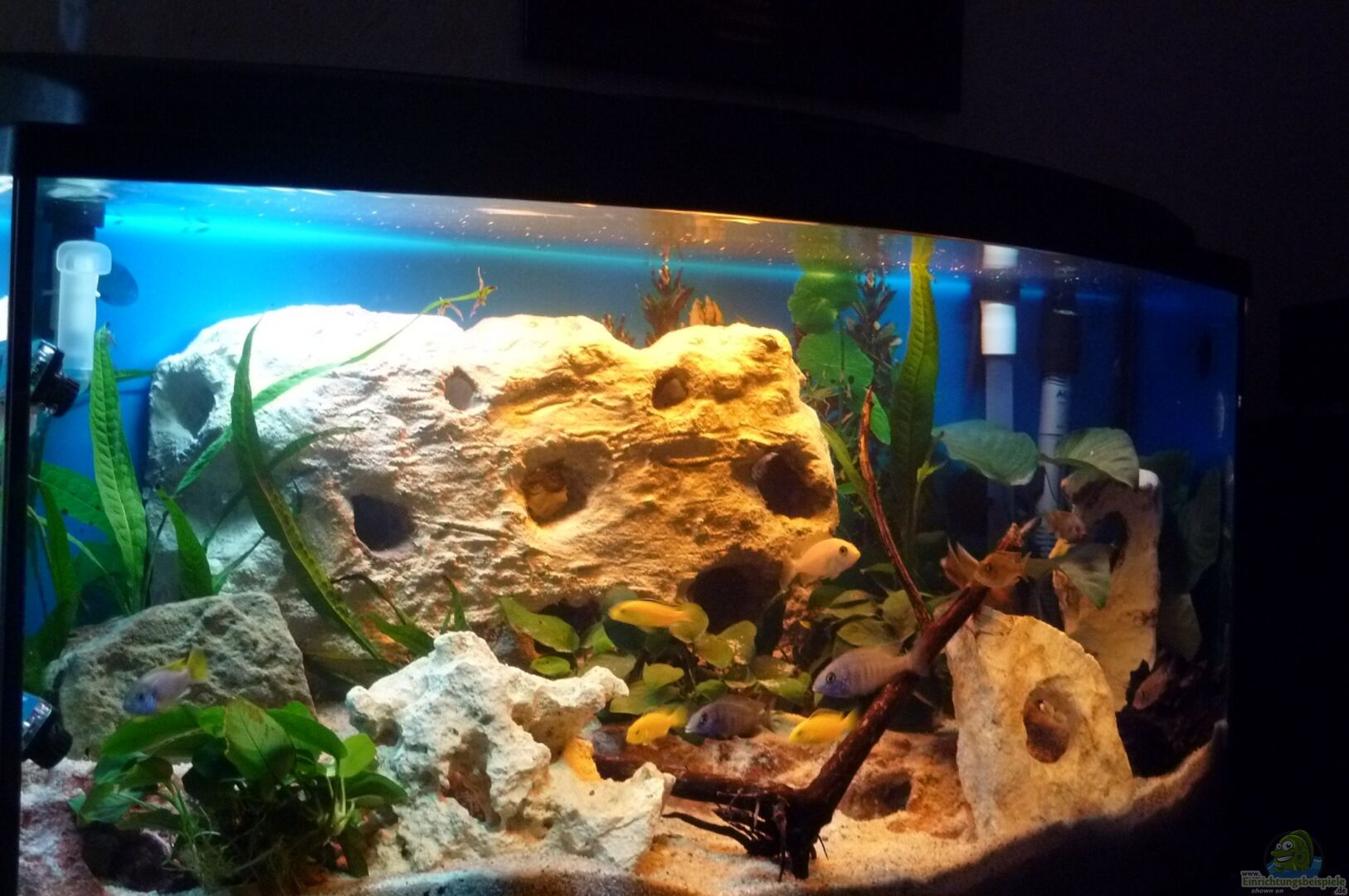 Aquael-Becken mit gewölbter Frontscheibe. Achtung ! Wir Malawis sind schon im Juni bei bester Gesundheit umgezogen !