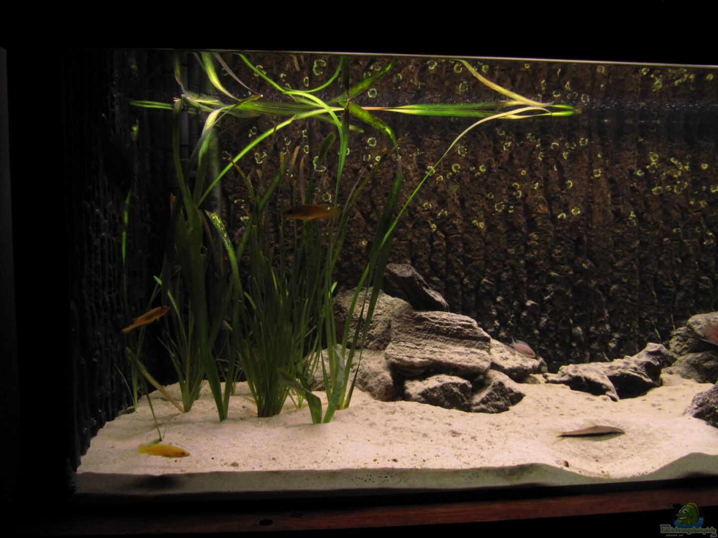 Die Bepflanzung besteht Aus einer Cryptocoryne usteriana (Hammerschlag Wasserkelch) in der rechten hälfte und einer Microsorum pteropus (Javafarn) in der linken hälfte! Die beiden Pflanzen eignen sich sehr gut in einem Tanganjika oder Malawi Aquarium! Vallisneria gigantea (Riesenvallisneria) ist nicht mehr drin! (nur noch ein Beispiel!!!!)
