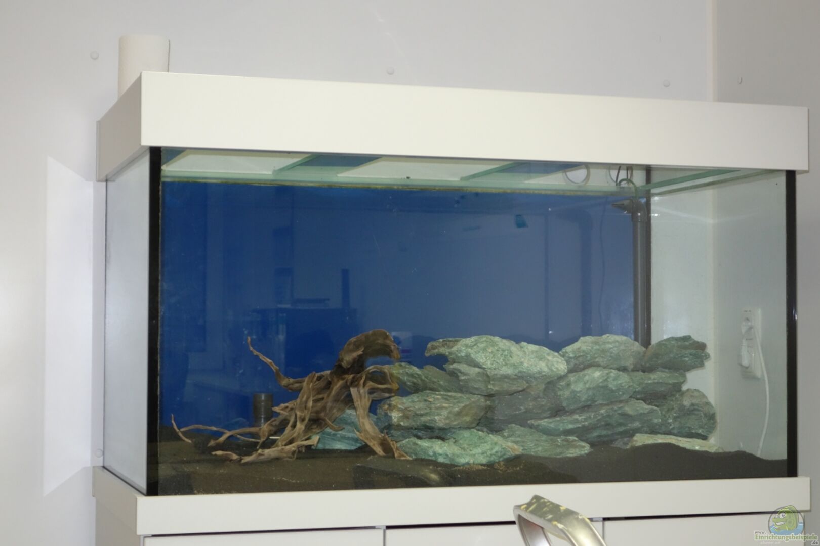 Umzug des Beckens am 25.01.2013 an seinen neuen Platz. Beginn der Neueinrichtung des Becken am 01.02.2013 Anfertigung des Becken durch meinen Händler Fischer Fische in Schwieberdingen im Jahr 2007 mit 12 mm Floatglas. Verrohrung PVC durch die Bodenscheibe. Unterschrank und Blende als Anfertigung durch meinen Freund.