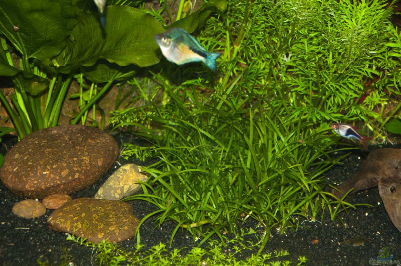 Hier findest du wichtige Infos zur Haltung und Beispiele für die Einrichtung eines Aquariums für Spathodus erythrodon (Blaupunkt-Grundelbuntbarsch).
