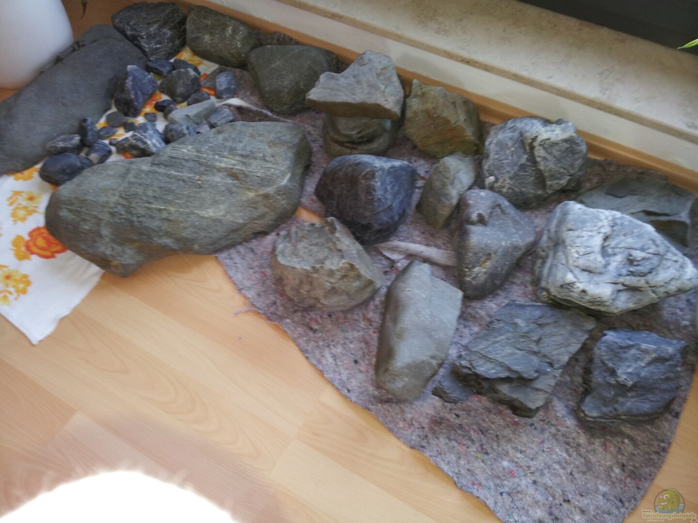 ca 70 kg dunkles gemischtes Gestein vom Ufer "unseres" Kiessees ca 60 kg alpines und rundes plateauartiges Gestein vom Natursteinhandel