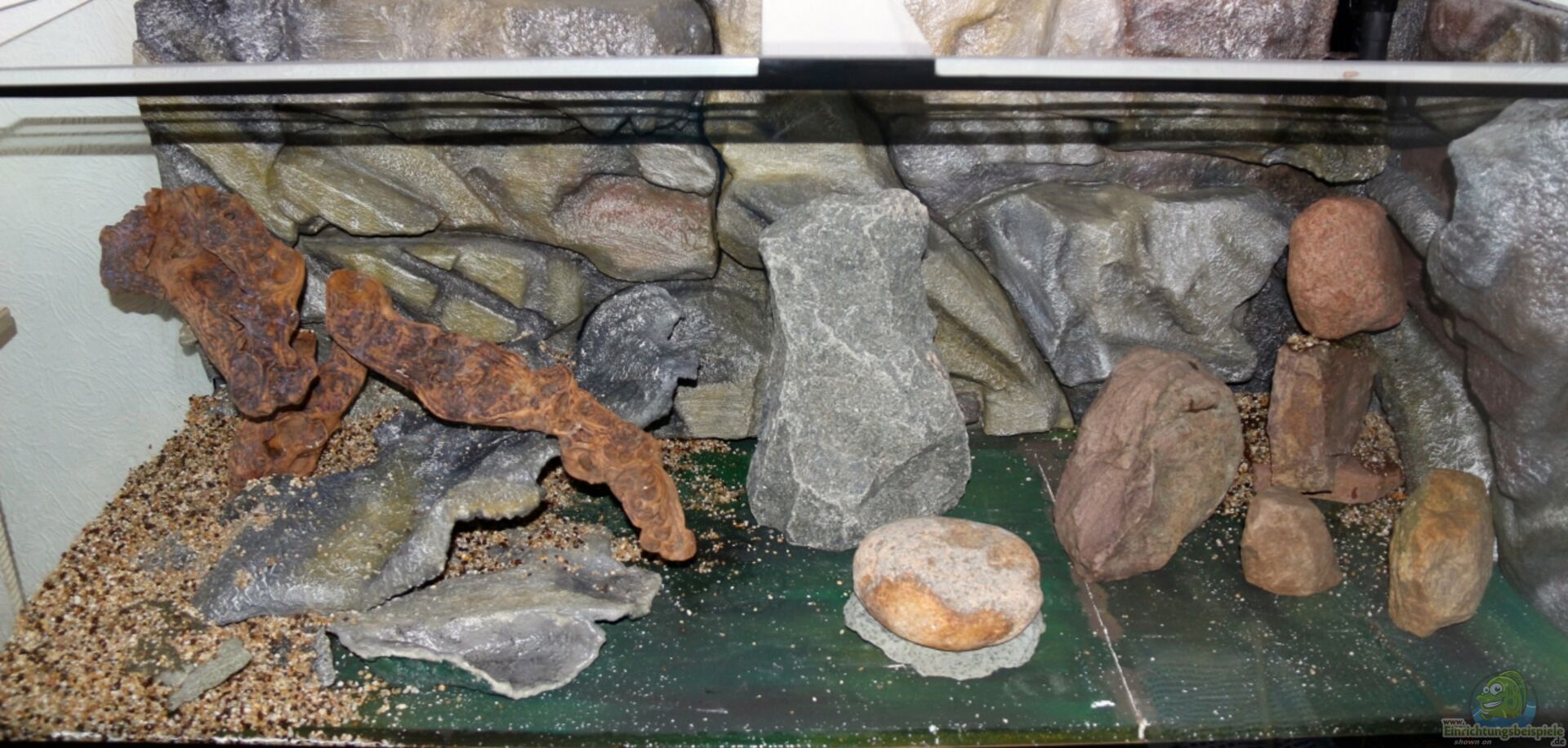 Becken von Rutschke Aquaristik, Floatglas geschliffen, Stärke 10mm, Sto??-und Wulstverklebung. Unterschrank im Eigenbau 150x60x72 mit zwei Türen (siehe Blog 2) Zwischen Unterschrank und Aquarium befindet sich eine Moosgummiplatte zum Ausgleich von Unebenheiten. Der Beckenboden innen ist mit einer 2 cm Styroporplatte ausgelegt als Druckausgleich und zum Schutz des Bodenglases. Darstellung einer ??bergangszone des Malawisees. Von der rechten Beckenhälfte, mit einigen Steinaufbauten [...]