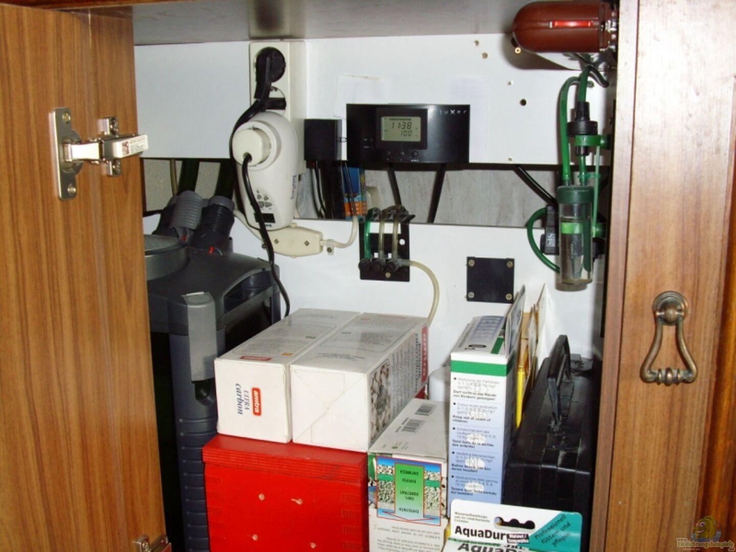 Eine Membranpumpe die einen Durchlüfter betreibt, der aus einem Keramikstab besteht und seitlich unter dem Sand an der Scheibe angebracht ist. Einschaltzeiten von 23:00 bis 08:00 um grad Nachts eine Optimale Sauerstoffzufuhr zu gewährleisten, da ja die Pflanzen um diese Zeit auch Sauerstoff verbrauchen. Weiterhin sind 2 PC-Lüfter in der Abdeckung eingebaut, die den Zweck erfüllen sollen, die warme Luft der Leuchtstoffröhren abzusaugen. Die Lüfter sind durch ein regelbares 12-Volt-Netzteil [...]