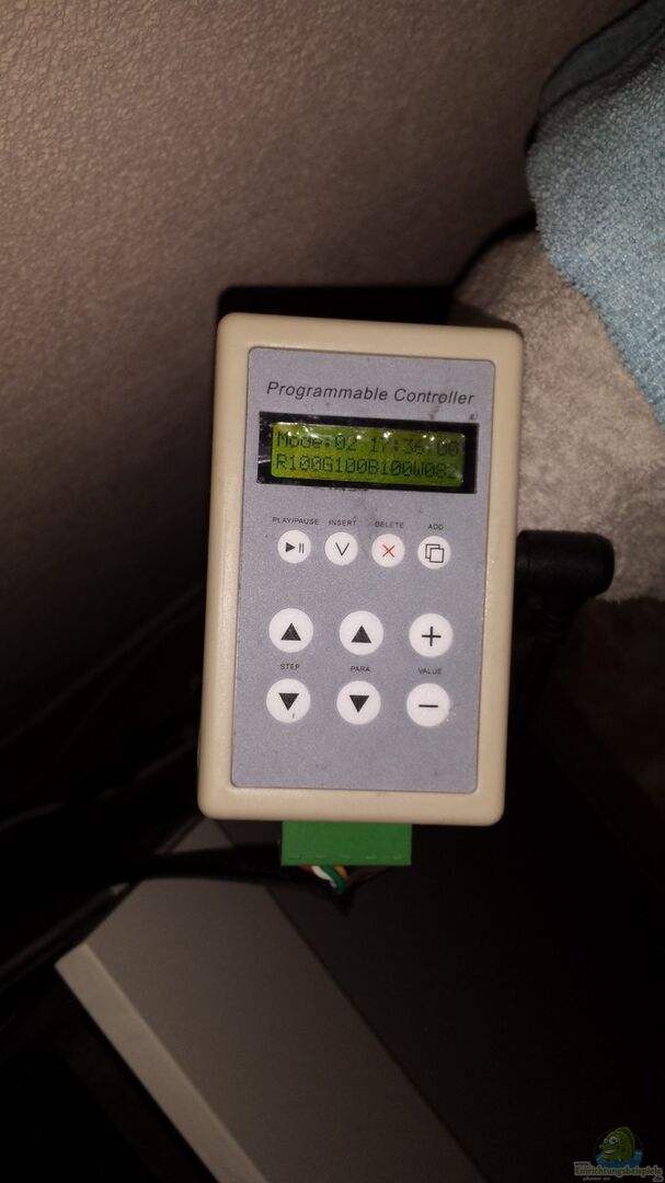 1x Jäger Stabheizer 300W 1x Luftheber 1x CO2 - Anlage Dennerle (40 Blasen / Min. mit Nachtabschaltung) 1x Strömungspumpe Wave Maker Strömungspumpe Umwälzpumpe 12000L/H (2 Schrauben): Läuft 3x täglich zwischen 12 Uhr und 18 Uhr für je 10min als Ueberschwemmungs-Simulation 1x Osmose Anlage mit 3 Vorfilter 1x 200L Speicherbehälter für Osmosewasser (aufmineralisiert mit Preis Diskus Mineralien)