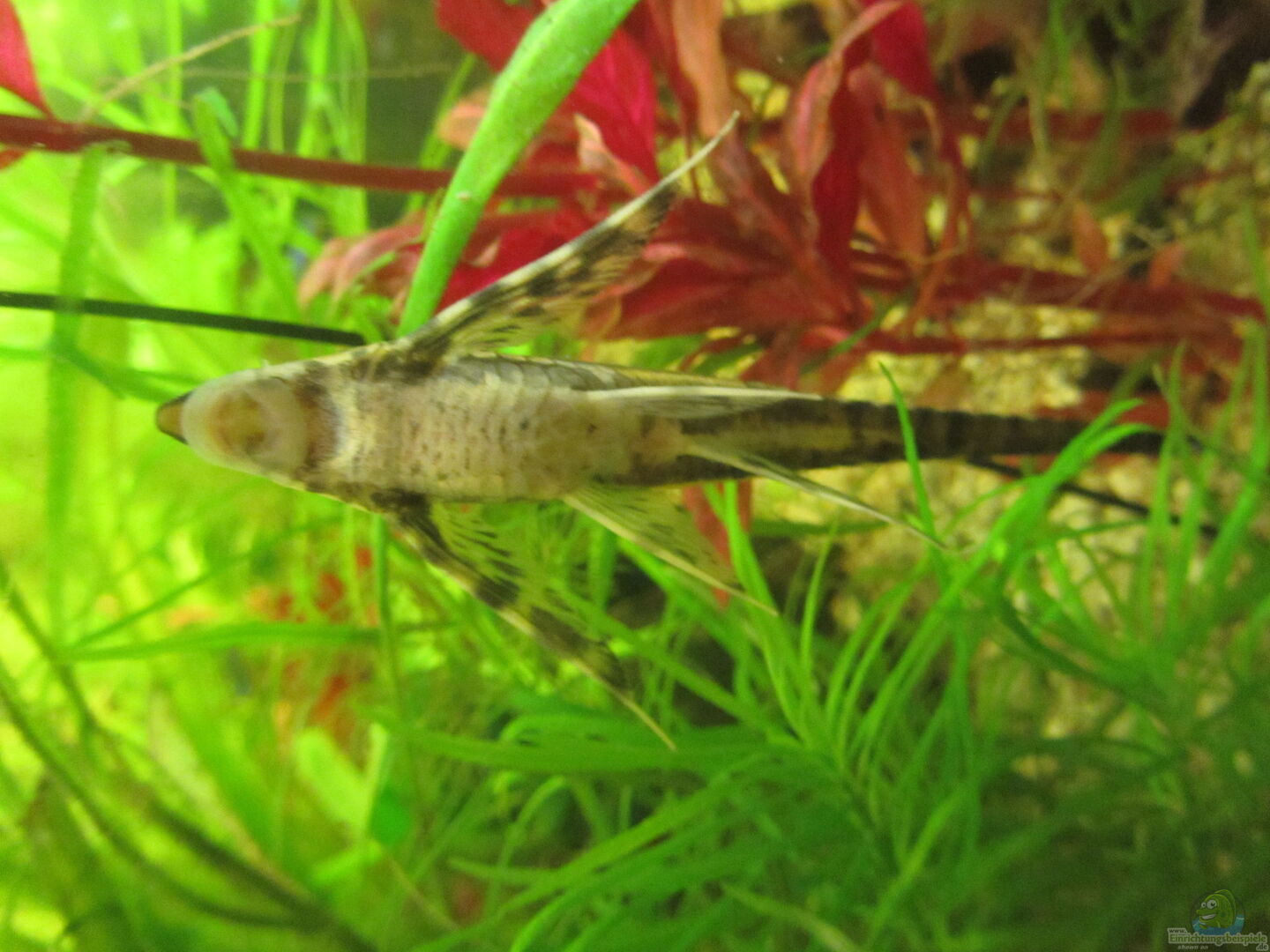 10 Hyphessobrycon simulans - Blaue Neons (sind in Altersteilzeit und verbringen ihren Lebensabend noch im Becken - werden nicht aufgestockt) 9 Corydoras Agassizi - Silberstreifenpanzerwelse 1 Sturisoma aureum - Gold-Störwels 1 Ancistrus spec. - Honigwaben-Antennenwels 1 Atya gabonensis - blaue Gabun-Fächergarnele 5 Trichogaster Leeri - Mosaikfadenfische 3 Crossocheilus latius - Glimmerlabeos, indischer Algenfresser 12 Neritina pulligera - Anthrazit Napfschnecken 20 Planorbarius [...]