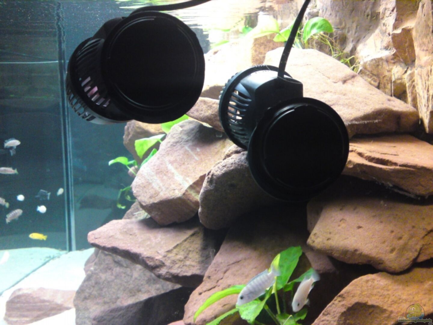 Hydor Koralia 2 ( 2300 l/h bei 4, 5 Watt) und Koralia 3 (3200l/h bei 5, 5 Watt) gesamte Umwälzung inkl. Filterpumpe: ca. 6600l/h Jäger Heizstab 300 Watt