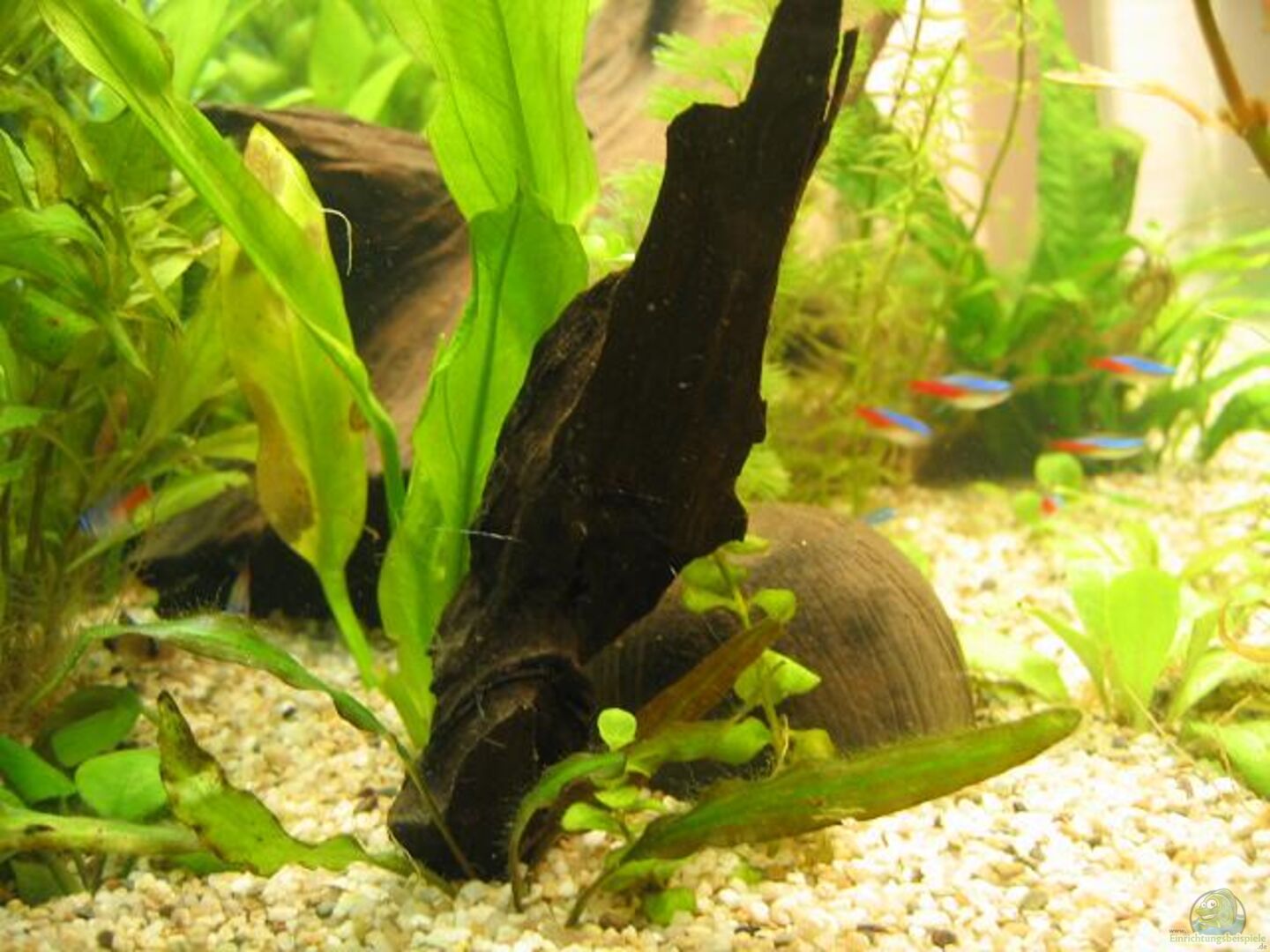 1 Wurzel 2 Halbe Kokosnussschalen( selbst gemacht ) 1 Stein 1 Kleine Wurzel hochkant reingesteckt