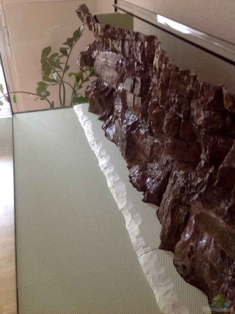 3D-Rückwand mit dahinter eingebautem biologischem 3-Kammer-Innenfilter, siehe: www.aquarienkontor...der-ewig-wartungsarme/ www.aquarienkontor...wandfilter-im-einsatz/ Unterschrank von K-Line-design (www.k-linedesign.ch/)
