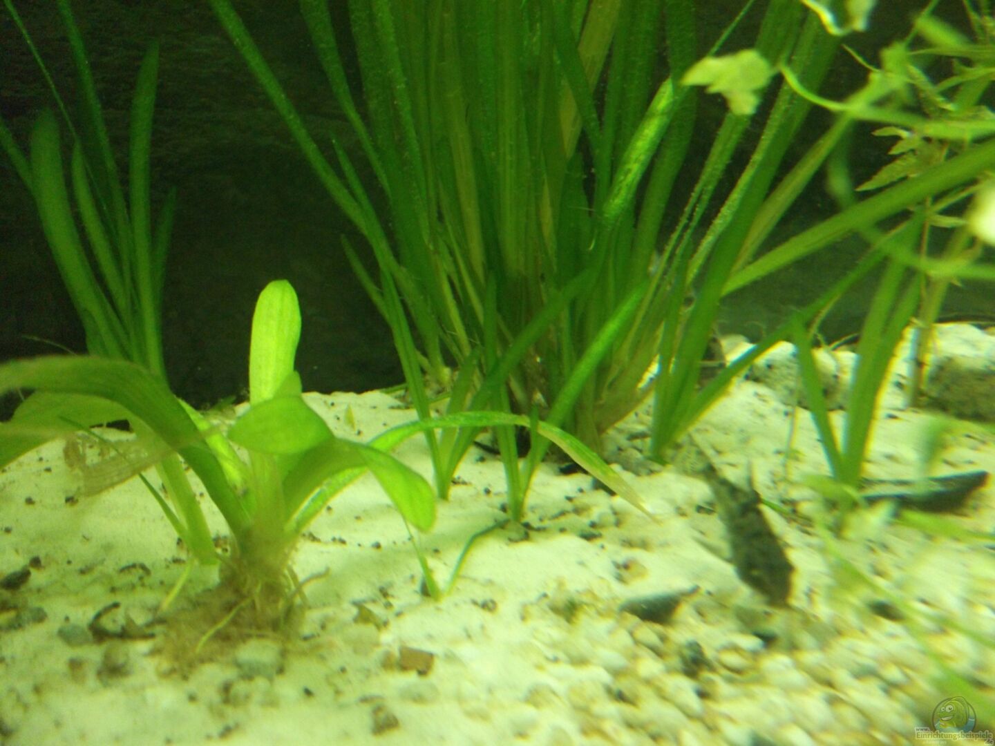 Bei der Einrichtung setzte ich folgende Pflanzen ein: 5xSumpfschraube (Vallisneria spiralis) Wissenschaftlicher Name: Vallisneria spiralis Deutscher Name: Gewöhnliche Sumpfschraube Lage im Aquarium: Hintergrund Wuchshöhe: bis 100 cm Wachstum: mittel bis schnell Lichtbedarf: anspruchslos Temperaturspanne: 15-28 °C Wasserwerte: relativ anspruchslos Schwierigkeitsgrad: einfach 2xBreitblättriges Pfeilkraut (Sagittaria platyphylla) Wissenschaftlicher Name: [...]