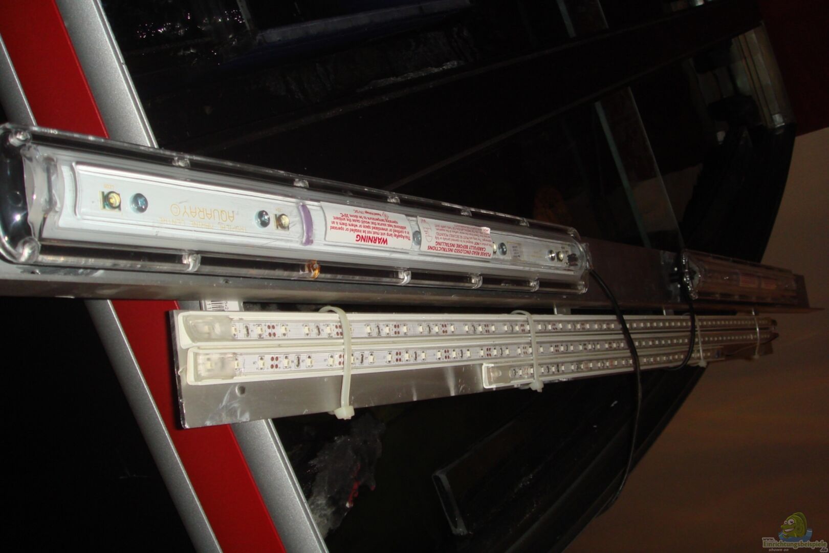 Tunze Turbelle Nanostream 6045 Leistung: auf grö??ter Stufe 4.500l/h bei 7W. Sie wird im Intervall von 20 min/ h von 7.00 Uhr bis 20.00 Uhr betrieben. Standort ist hier die vordere linke AQ-Ecke, versteckt in einer Höhle des Felsenmoduls unter der Wasseroberfläche. Ihre Strömungsrichtung an der Frontscheibe entlang, gegen die Strömung der anderen Pumpen, bewirkt so ein aufwirbeln des Drecks, so dass Mulmablagerungen keine Chance haben. -------- 1. Heizer: " Trixie " [...]