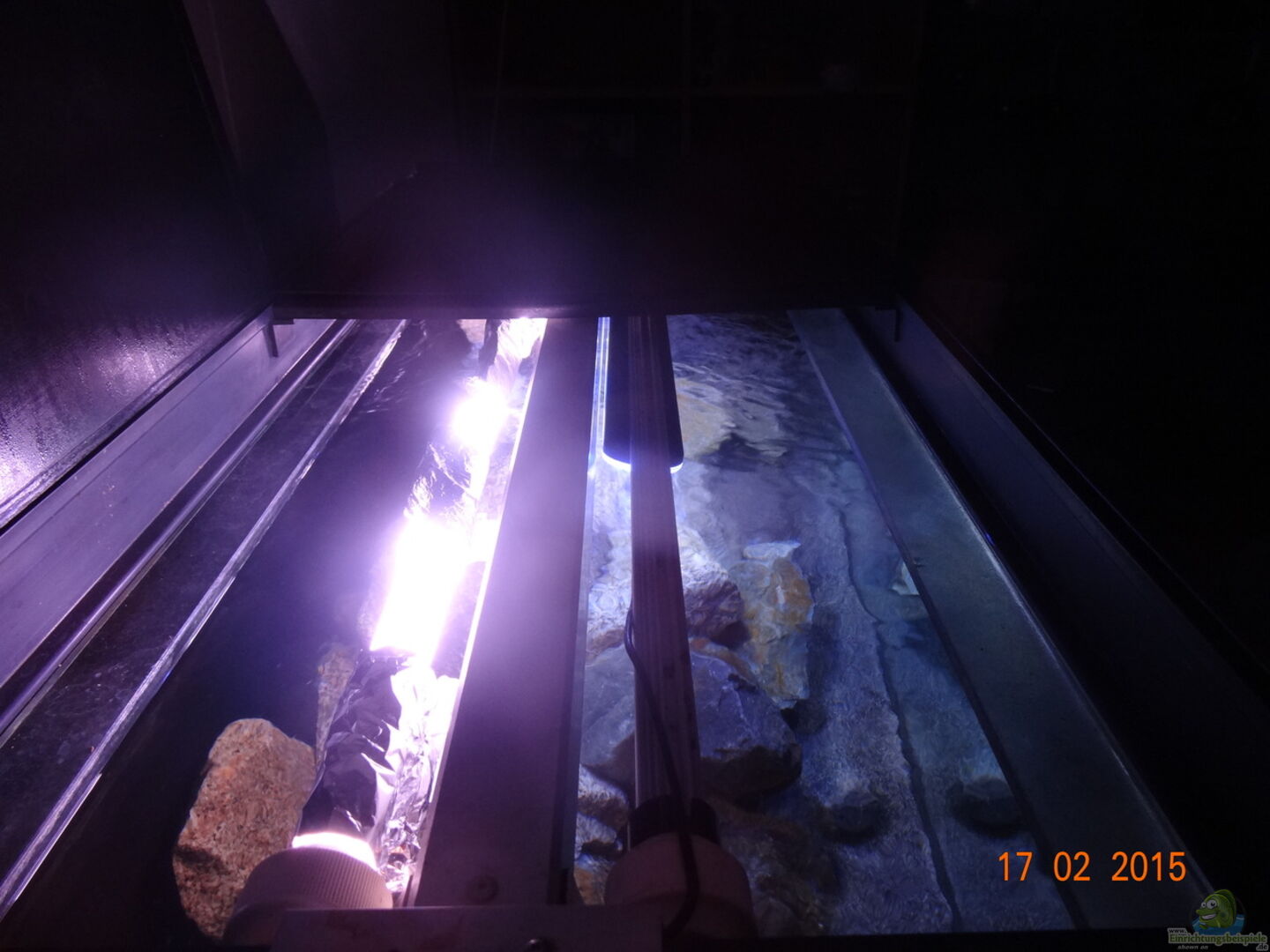 Tunze Turbelle Nanostream 6045 Strömungsleistung 1500 - 4500 l/h (auf maximum eingestellt) Eheim Luftpumpe um CO2 auszutreiben und damit den pH Wert in die Höhe zu treiben.