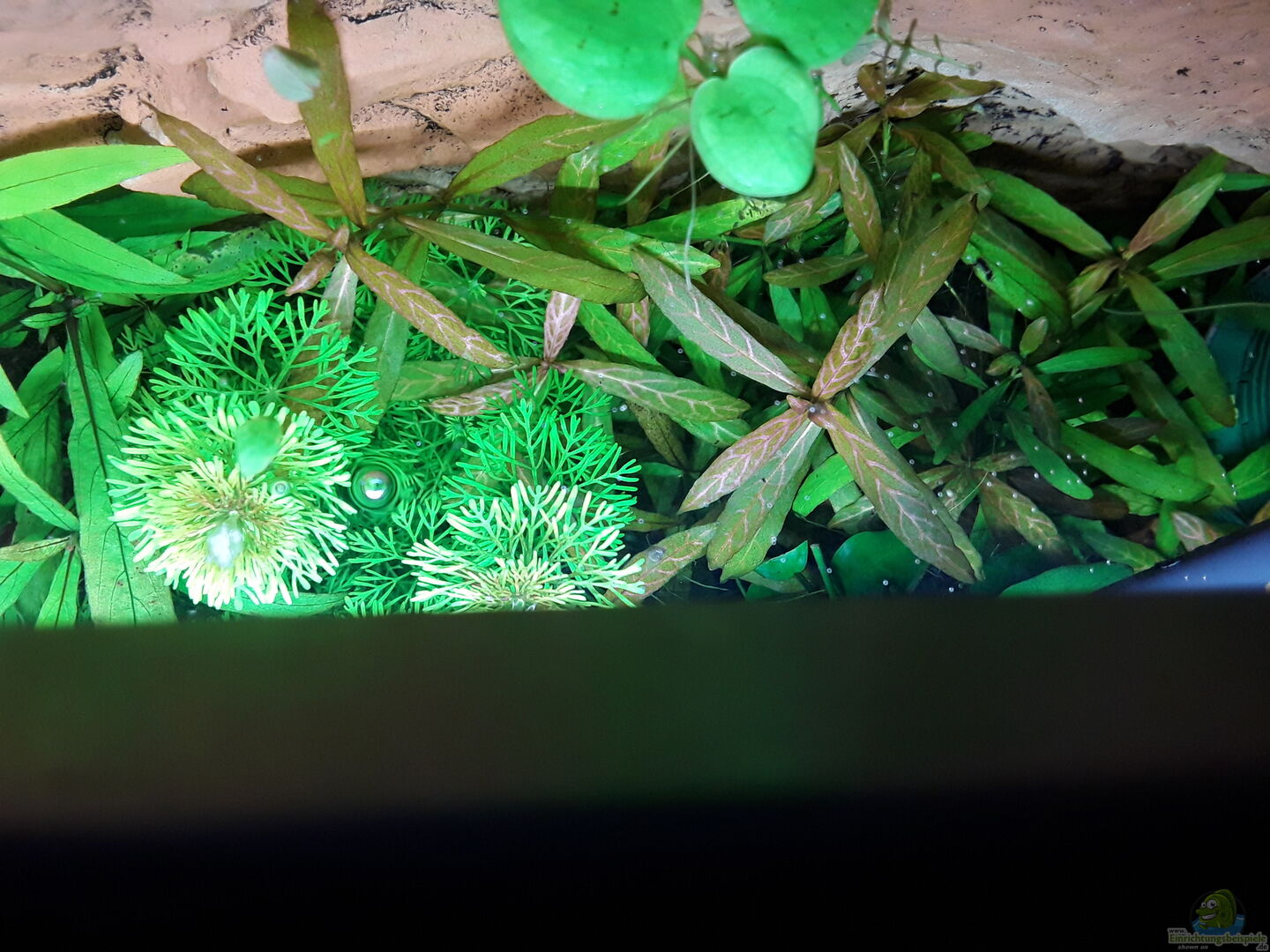 - Javamoos - Nadelsimse - Alternanthera reineckii "Pink" (Lilafarbenes Papageienblatt) - Micranthemum umbrosum - Bacopa monnieri (Kleines Fettblatt/Pfennigkraut) - Hygrophila polysperma Rosanervig (Sunset-Wasserfreund) - Limnophila sessiliflora - Limnobium laevigatum (Südamerikanischer Froschbiss) - Anubias nana (Zwergspeerblatt) auf Wurzel - Ludwigia palustris (Sumpflöffelchen)