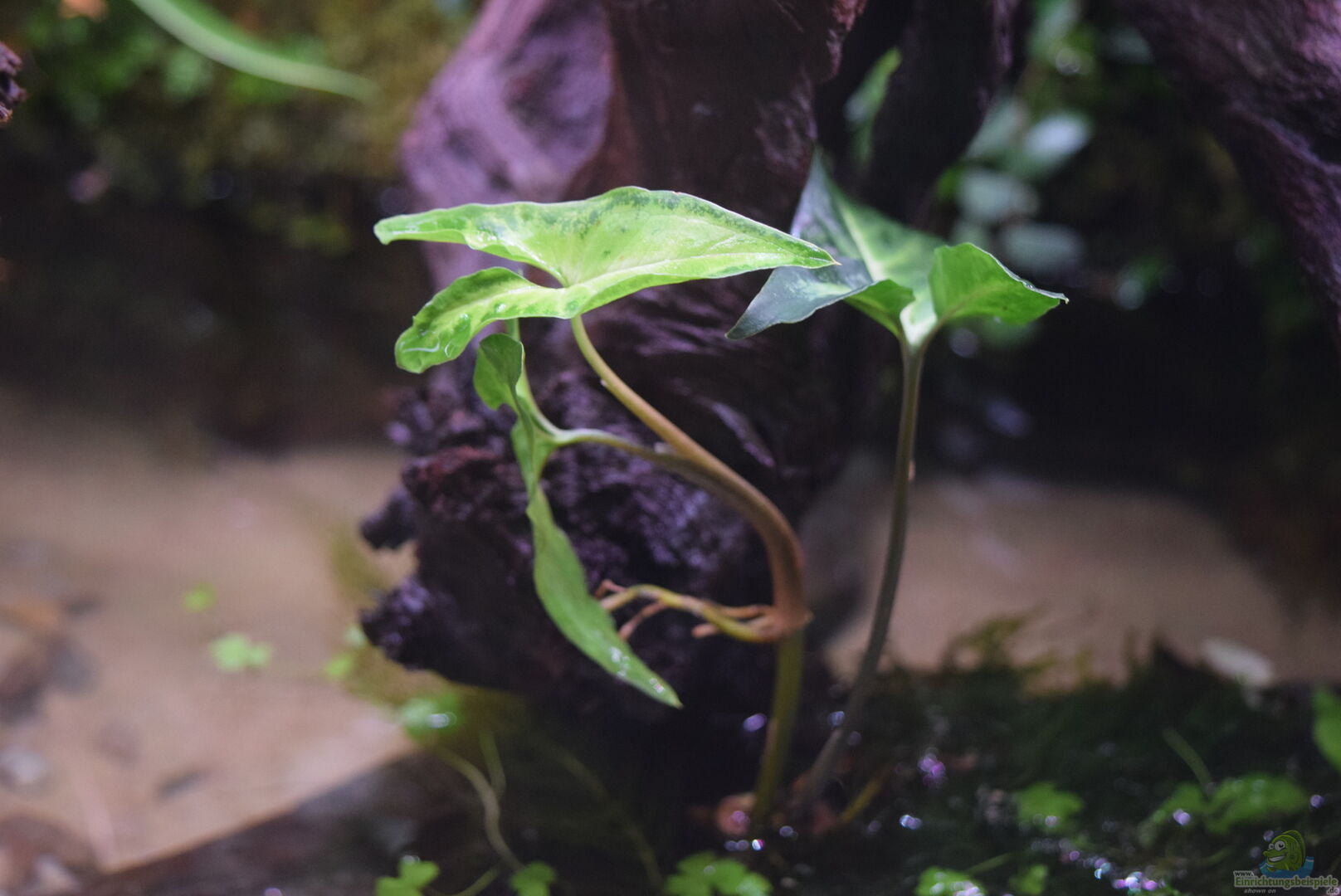 Wasserteil: Submers: Taxiphyllum barbieri, Emers: Bucephalandra sp. Red, Anubias hastifolia, Hydrocotyle tripartita, Sphagnum Landteil: Bromelien: Neoregelia Akeso, Neoregelia ampullaceae Hybride, Vriesea hieroglyphica Rückwandteil: Ficus scandes quercifolia, Begonia prismatocarpa, Syngonium wendlandii, Monstera acuminata, Ficus spec. Borneo, Ficus sagittata Das Sphagnum hab ich aus einem anderen Terrarium geerntet und mit Hygrolon an der Mangrovenwurzel befestigt. [...]