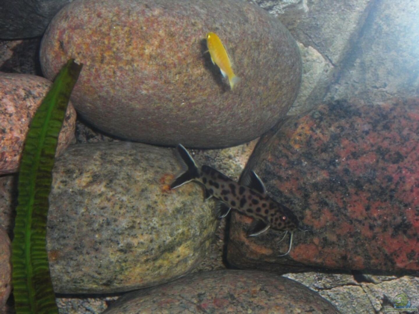 ~~ 1/3 Labidochromis " hongi ", mbuna 1/3 Pseudotropheus saulosi, mbuna 6 Synodontis petricola ~~ > Steckbriefe meiner Bewohner < ~~ Labidochromis "hongi" mbuna Beckengrö??e ab 100 cm, ab 200 L Grö??e: M 11 cm, W 9 cm wandern in ca.20-25 m Tiefe durch die Felsen (keine Revierbildung) östl. Malawisee, Futter: Insektenfresser, Krebstierchen, Aufwuchsfresser Haltung: mind 1/3 Verhalten: Friedlicher, zurückhaltender Bewohner, [...]