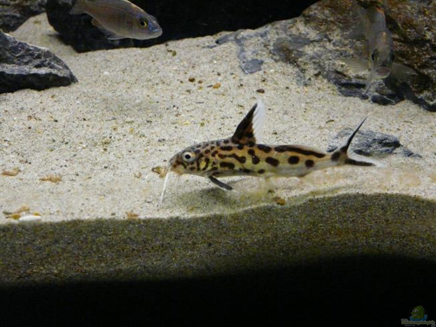 Hier finden Sie Einrichtungsbeispiele für Aquarien, die mit Fiederbartwelsen der Art Synodontis multipunctatus (Vielpunkt-Kuckuckswels) besetzt sind.