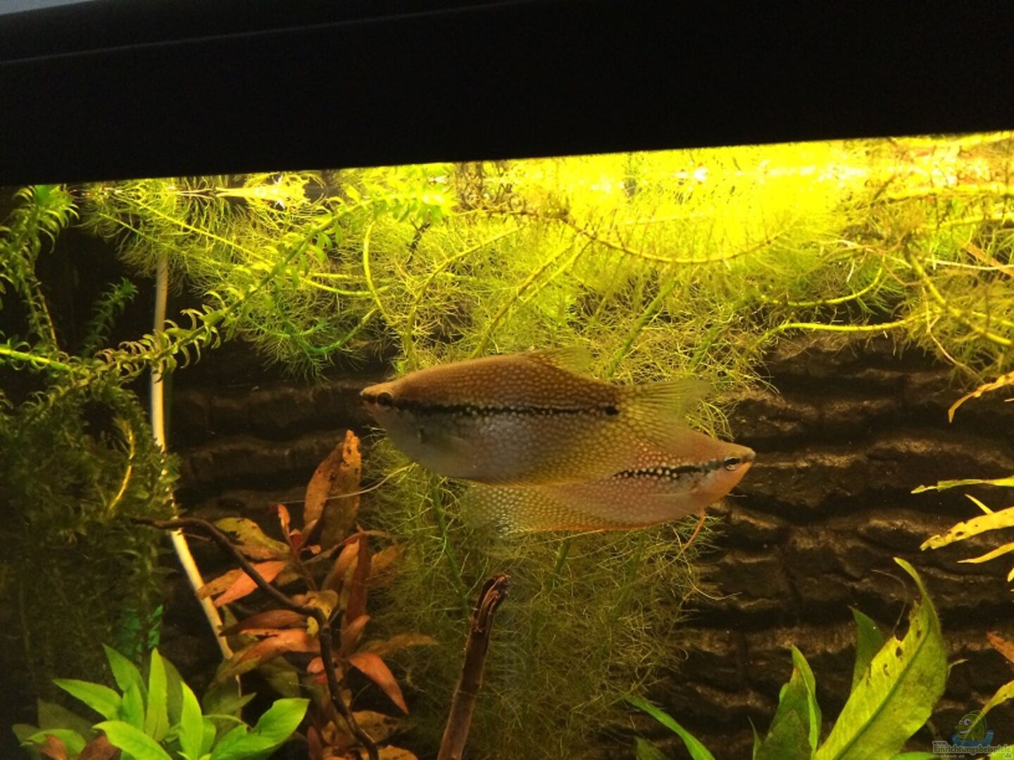Trichogaster leeri (1m/1w) Trichogaster microlepis (1w) Barbodes semifasciolatus (2m/2w) - werden nicht mehr aufgestockt Botia almorhae (7, Geschlechter unbekannt) Wirbellose: 10x Caridina japonica Bei der Microlepis-Dame bin ich mir unsicher, was ich tun soll. Ich hatte ursprünglich ein Paar erworben, leider war das Männchen in keinem sehr guten Zustand, meine "Aufpäppel"-Versuche schlugen fehl. Auf der einen Seite ein in meinen Augen unfassbar schöner Fisch, [...]