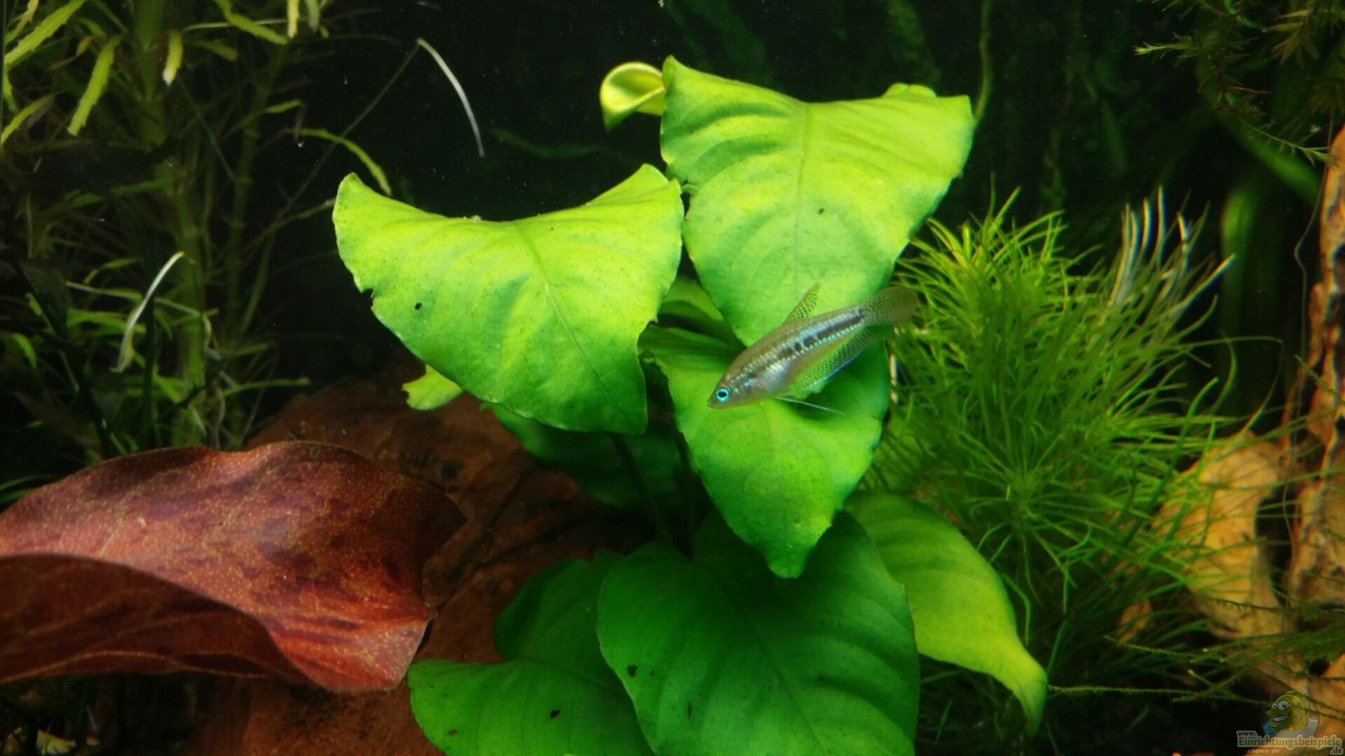 Fische: 25x C. pygmaeus 7x C. paleatus 2x C. chuna 2x S. osphromenoides 6x P. kuhlii 2x T. pumila 9x O. hoppei 2x N. guentheri Garnelen: 50+ Caridina cf. cantonensis alle Farben Schnecken: 6x C. diadema 4x N. pulligera 2x P. diffusa Ich muss zugeben, ein recht ungewöhnlicher Besatz, der sich trotzdem sehr harmonisch ins Becken einfügt. Besonders kritisch habe ich den Besatz mit einem Pärchen S. osphromenoides gesehen, sind sie doch sehr heikle Pfleglinge [...]