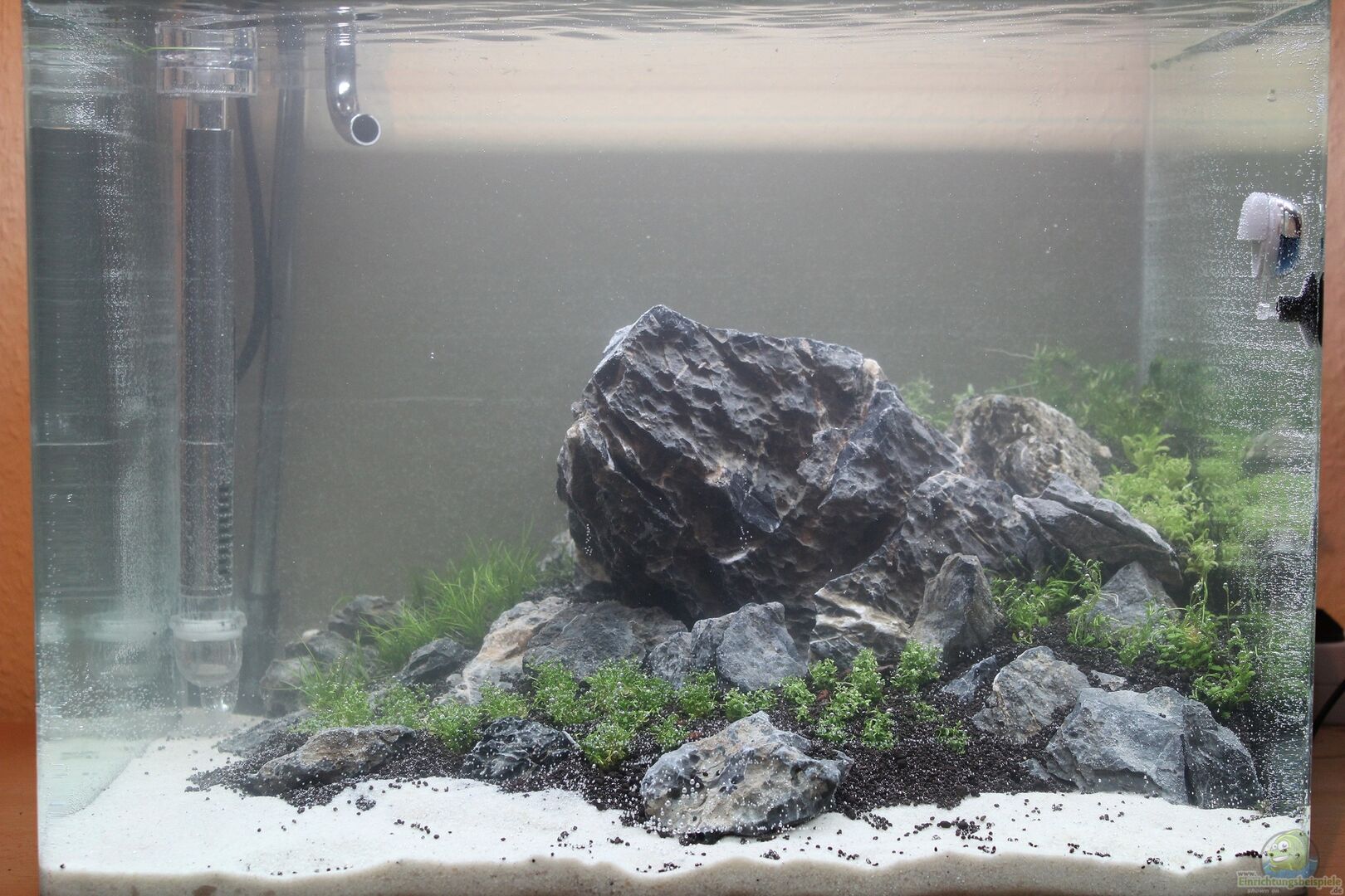 Dies ist nun endlich mein erstes Aquascape. Nachdem ich mich eine Ewigkeit zu dem Thema informiert habe, wollte ich nun endlich auch mal selber probieren, eine kleine Unterwasser-Landschaft zu gestalten. Ich für meinen Teil bin mit dem Ergebnis bis jetzt sehr zufrieden.