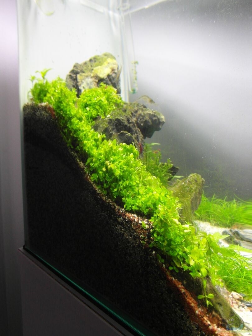 Abgeklebte Rückwand. Hierzu wurde Folie aus dem Baumarkt verwendet. Vorgehensweise: 1) Passende, selbstklebende Folie kaufen oder mit einer Schere auf Ma?? schneiden. 2) Die Schutzfolie wenige Zentimeter abziehen und am oberen Rand des Beckens anbringen 3) Nun mit der einen Hand und einem weichen Tuch die Folie langsam nach unten streichen, dabei mit der anderen Hand die Schutzfolie langsam, Stück für Stück abziehen. Die Bewegungen des Tuches sollten seitwärts und nach unten arbeitend [...]