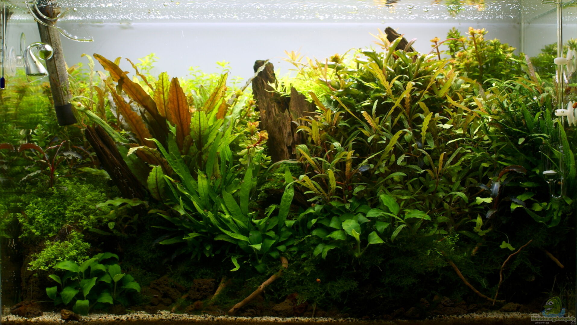 Es handelt sich um ein transparent verklebtes Glasgarten-Aquarium aus einfachem Floatglas. Die Rückwand ist mit Milchglasfolie beklebt. Ich habe das Becken in der Rubrik Aquascaping eingeordnet, obwohl es nicht wirklich eine Landschaft darstellen soll. Soll eher ein Versuch in Richtung "Naturaquarium" sein. Letztendlich ist es aber ja aber aauch völlig egal wie man es nennt...