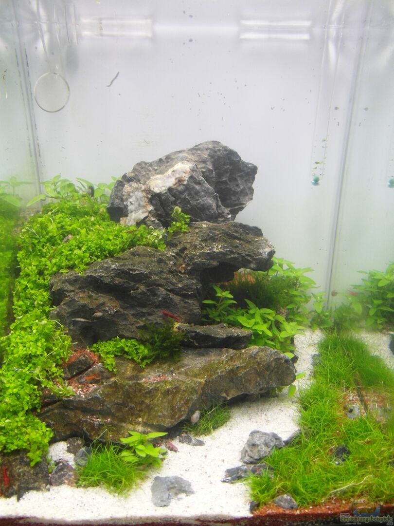 Abgeklebte Rückwand. Hierzu wurde Folie aus dem Baumarkt verwendet. Vorgehensweise: 1) Passende, selbstklebende Folie kaufen oder mit einer Schere auf Ma?? schneiden. 2) Die Schutzfolie wenige Zentimeter abziehen und am oberen Rand des Beckens anbringen 3) Nun mit der einen Hand und einem weichen Tuch die Folie langsam nach unten streichen, dabei mit der anderen Hand die Schutzfolie langsam, Stück für Stück abziehen. Die Bewegungen des Tuches sollten seitwärts und nach unten arbeitend [...]