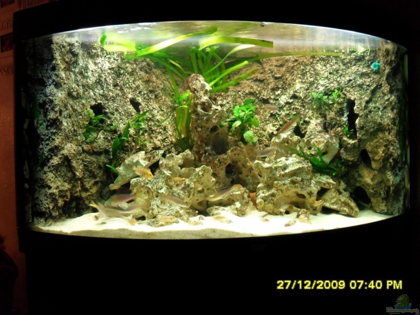 Das AQ ist ein Trigon 350 mit Panoramascheibe von Juwel, das ich nach meinen Vorstellungen modifiziert habe.An den beiden Au??enseiten habe ich oben und unten U-Profile angebracht in die ich beklebte Speerholzplatten eingeschoben habe.Das hat den Vorteil der Energieeinsparung und da ich sie immer wieder herausziehen kann hat man eine gute ??bersicht bei der Reinigung der Innenfilter.