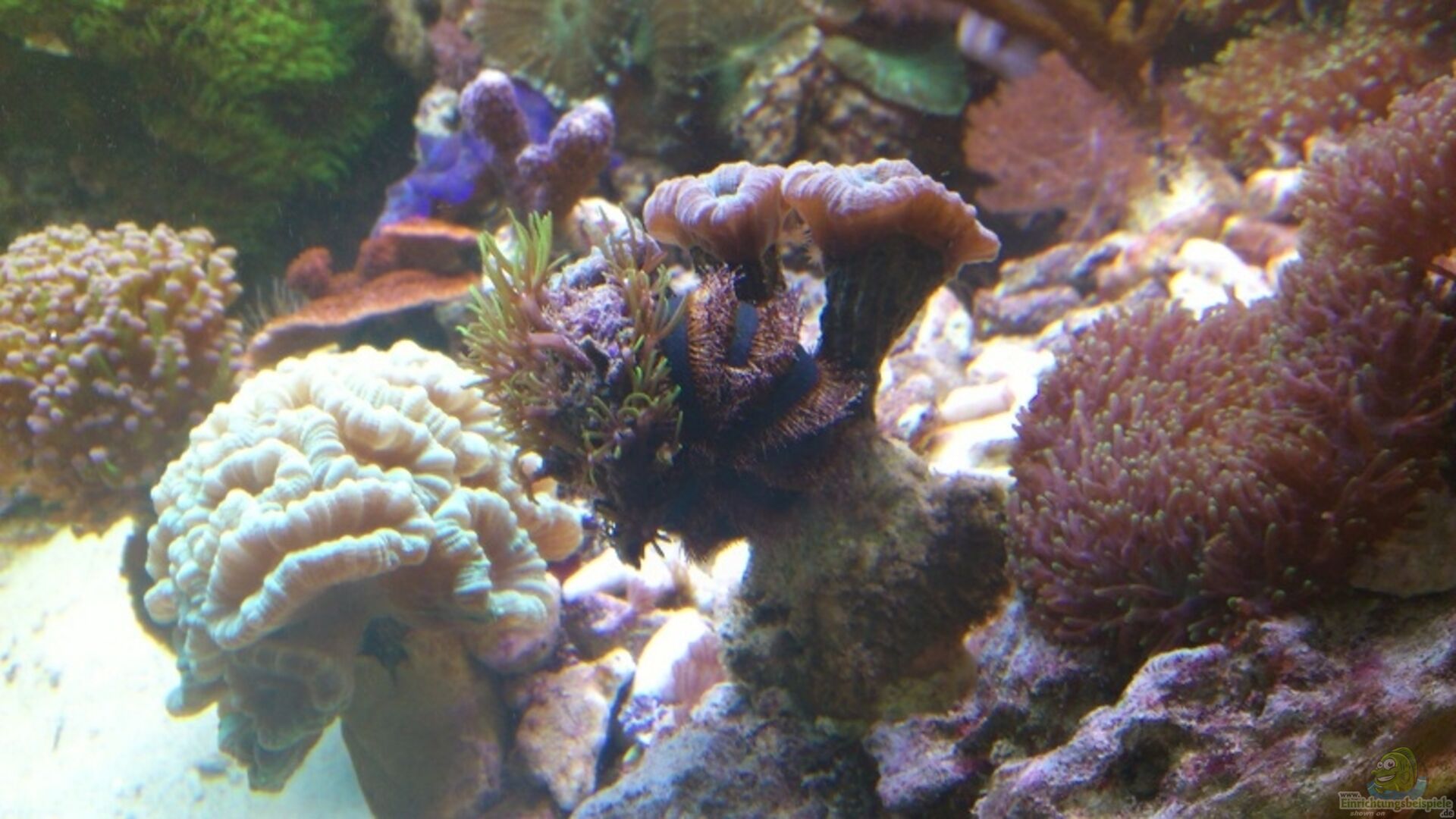 2 Zebrasoma flavescens, 2 Amphiprion ocellaris, 1 Cirrhilabrus flavidorsalis, 2 Labroides dimidiatus, 2Macropharyngodon bipartitus, 2 Valenciennea puellaris, 2 Cirrhitichthys falco, 2 Acreichthys tomentosus, 1 Gramma loreto, 2 Labroides dimidiatus, 1 Anampses twistii Diverse Weich-/Lederkorallen, z.B pumpende und nicht pumpende Xenien, Sarcophyton spec. div. Bäumchen, grüne Krustenanemonen, 2 rote Entacmaea quadricolor, Gorgonien, davon eine flächig wachsende Erythropodium caribaeorum uvm. Steinkorallen:z.B. [...]