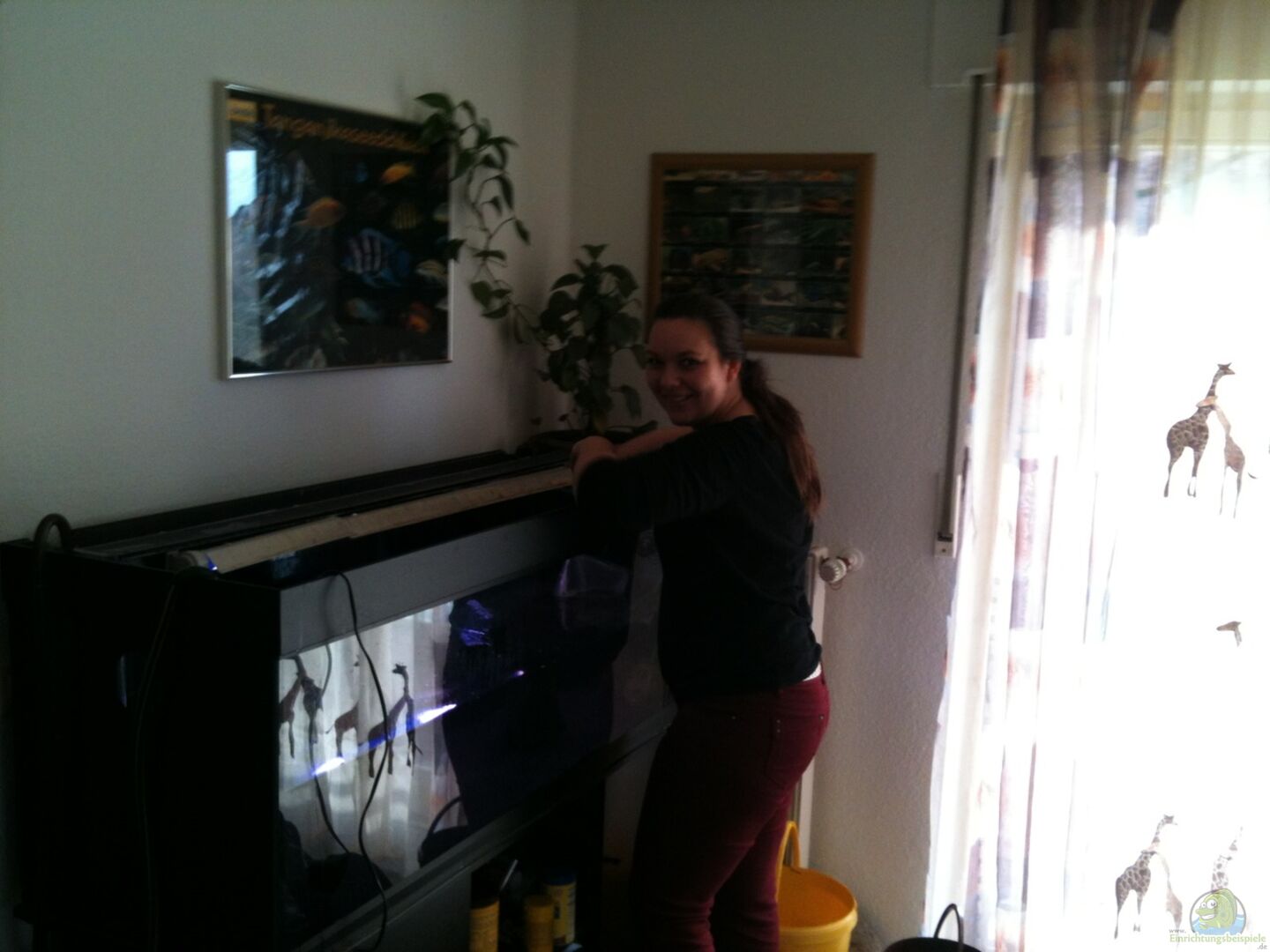 Standart Becken der marke Juwel.Rück und seiten Scheiben sind mit schwarzer Folie beklebt. Zusätzlich habe ich eine 3D rückwand verbaut die das Felstorial des Tanganjikasees wiedergeben soll.Die Rückwand steht ca.5 cm von der hinteren Scheibe ab. Das Becken hat nach abzug der Einrichting ein Wasservolumen von ca.300 liter.