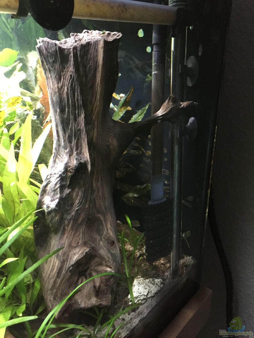 Als Heizung dient ein Eheim Jäger Regelheizer mit 300W. Die Temperatur liegt bei 26°C.