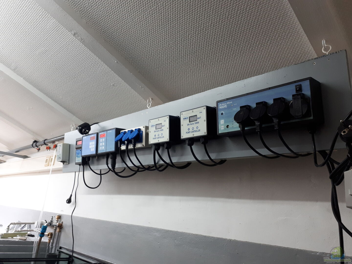 -Strömungspunpen: 3x Tunze 6085 - 8.000l/h - 14 W; gesteuert über Aqua Medic Wave (altes Modell) -Süsswasserabschäumer Aquaforte Tornado II; Wasserzufuhr über etwa den 1/2 Rücklauf der Wassermenge aus einer der o.a. Filterpumpen -Ozonisator CERTIZON Sander 25mg/h, einstellbar -> dadurch glasklares Wasser -Aqua Medic ph-Contoller, wird nur als Anzeigeinstrument genutzt -Heizung: Wärmetauscher (Edelstahlspirale) über Zentralheizung des Hauses, geregelt über einen Heimeier Thermostat-Kopf [...]