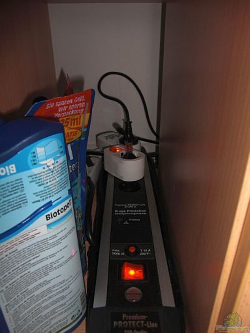 ~~ EHEIM- Heizung, Stab, 200Watt, regelbar, Strömungspumpe hydor nano; 4, 5 W, 900 l/h, Kreiselpumpe PRO FLOW maxi 750 von JBL, 7, 5 W, 670 l/h, mit Vorfilter, 3 Zeitschaltuhren, Aqua Cristal UV-C Wasserklärer, Serie 2, 11W, 600- 1000 l AQ, 150- 350 l/h über Zeitschaltuhr von 11 bis 21, 30 uhr zugeschaltet Marina- Aqua- Minder (Programierbare Einheit zur ??berwachung des Aquariums), Hörbarer und sichtbarer Alarm für: - eine max. und min. Temperatur, - [...]