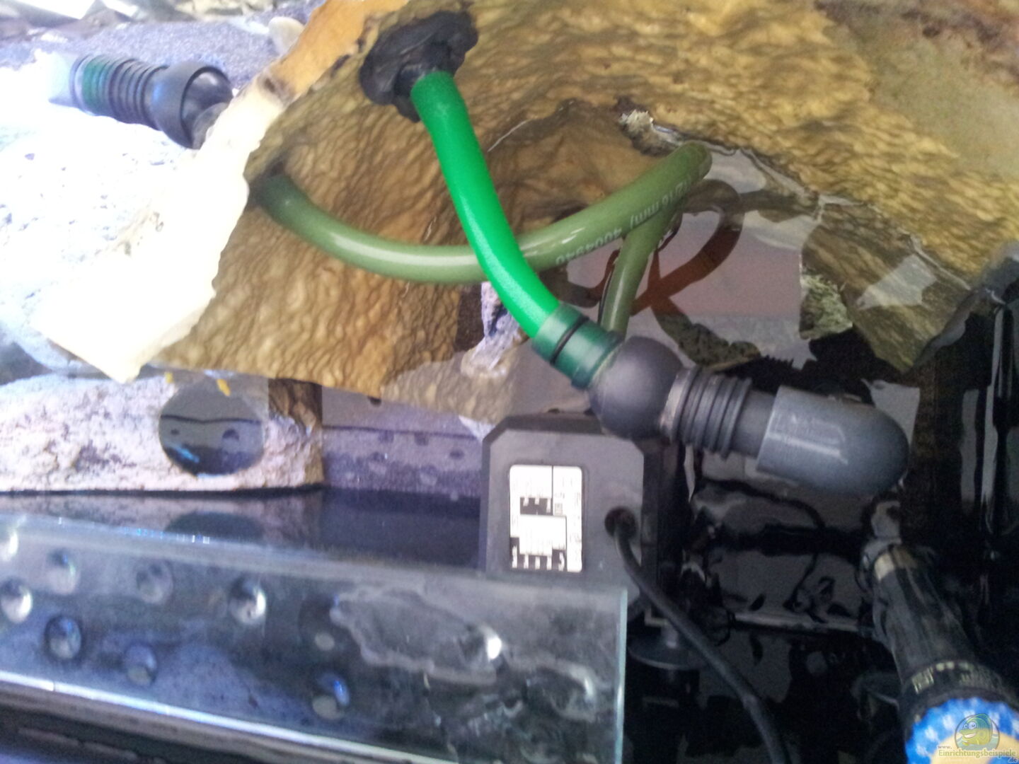 Tunze 6045 Strömungspumpe: Strömungsleistung von 1500 - 4500 l/h Die Strömungspumpe dient zur Oberflächenbewegung und ist auf eine Strömungsleistung von 4500 l/h eingestellt. Die Pumpe wurde auf der linken Beckenseite angebracht und soll unterhalb der Oberfläche eine schöne Strömung verursachen, Sediment aufwirbeln und die Fische beschäftigen. Jäher Regelheizer 300 Watt: Der Regelheizer ist ebenfalls hinter dem Back to Nature Modul B in der linken hinteren Ecke verborgen. Geregelt [...]