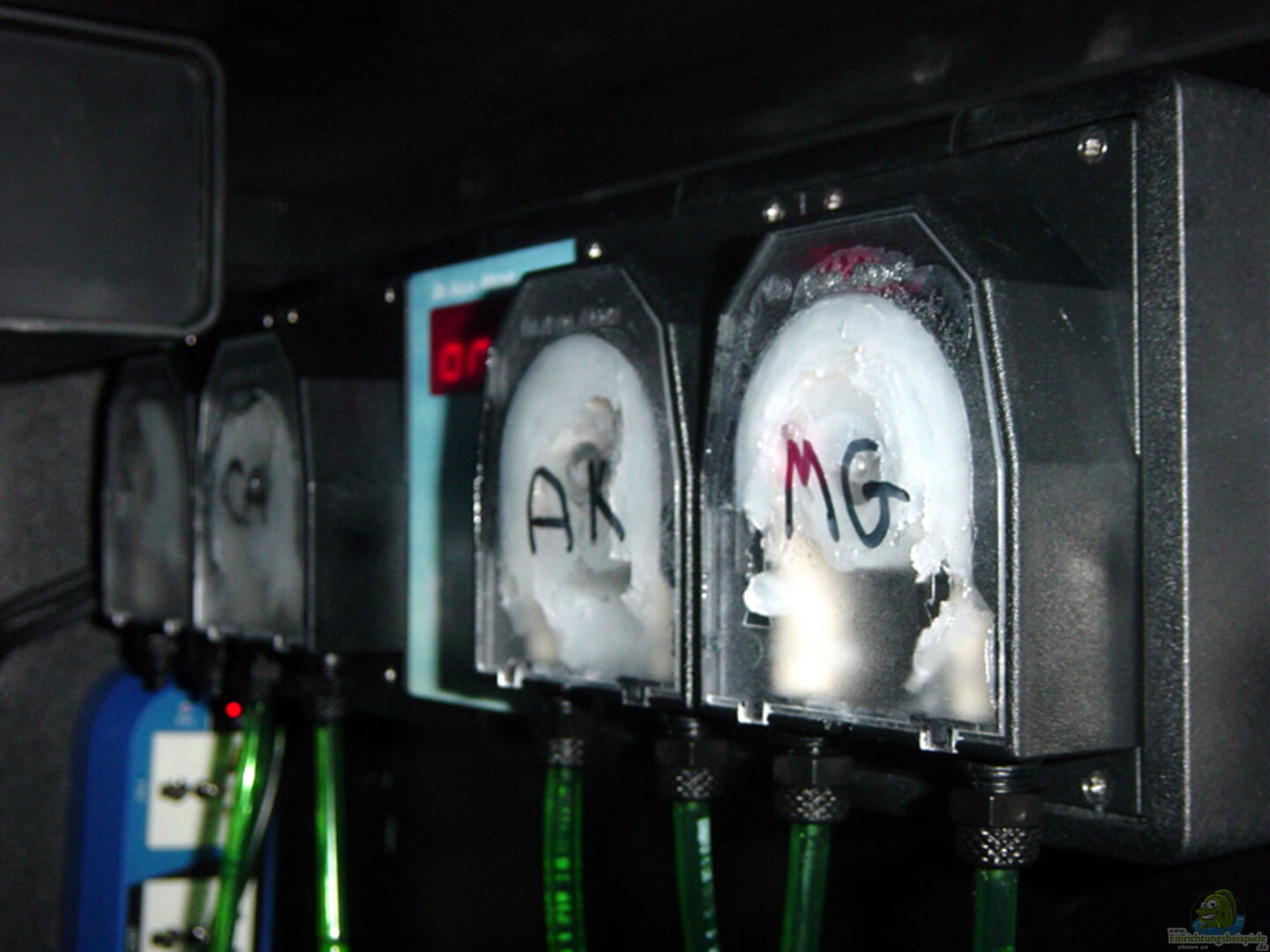 - Tunze Singlecontroller für Wellensimulation gesteuert über Photosensor - Wasserkühlungsgebläse (Doppel-Ventilatoren-Einheit) gesteuert durch Thermostat bei 26, 1° bis 25, 9° - Red Sea Max Heizstab Leistung 200Watt eingestellt auf 26, 0° - JBL AquaCristal UV-C 36 Watt am Zubehör-Kit des Beckens - O 300 Ozon Generator - Aqua Medic Reefdoser qadro - Aqua Medic Niveaumat SP 3000