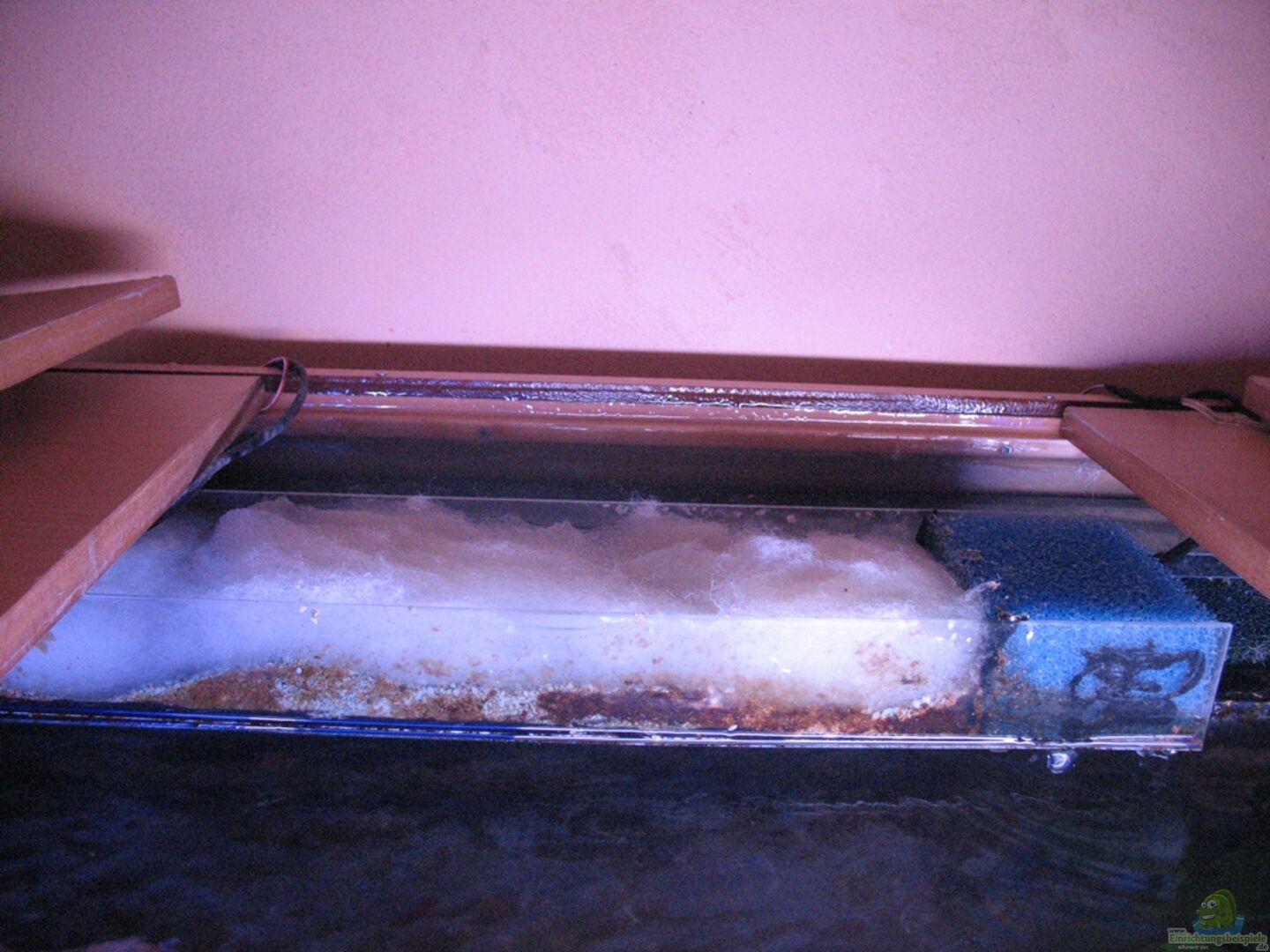 2 eheim 200w heizstäbe in den filterkammern (inaktiv - die beiden pumpen heizen das becken genau passend) 1 externes thermometer sowie ein externes ph-meter, beides im dauerbetrieb eigener wasseranschluss mit mischwasserventil für die passende temperatur beim wasserwechsel.... eigener wasser ablauf zum wasser entnehmen hinter dem aufbau in der mitte, also zwischen den beiden filtereingängen, ist eine spagettimatte 20x4x40 eingegossen welche jungtieren vorübergehend schutz bieten [...]