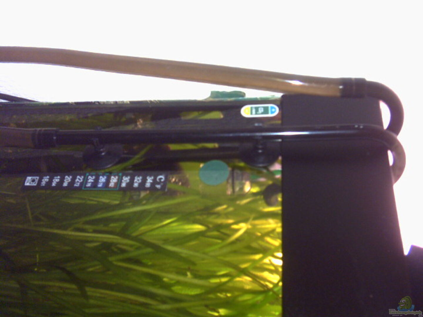 - Innenthermometer - Co2 Anlage (Flasche und Druckminderer von Dennerle, Blasenzähler und Rücklaufventil von JBL) - Co2 Ausströmer ( Energie mixer von Ferplast) - Nachtabschaltung // Die Co2 Anlage gibt 25 Bläschen pro Minute ab// - Bodenheizung 25 Watt Da die Bodenheizung das Becken nicht alleine bei einer Temperatur von 26°C halten kann, habe ich noch einen Heizstab mit in das Becken eingebaut, der mit einer Zeitschaltuhr versehen ist. So das der Heizstab alle 2 Stunden, [...]